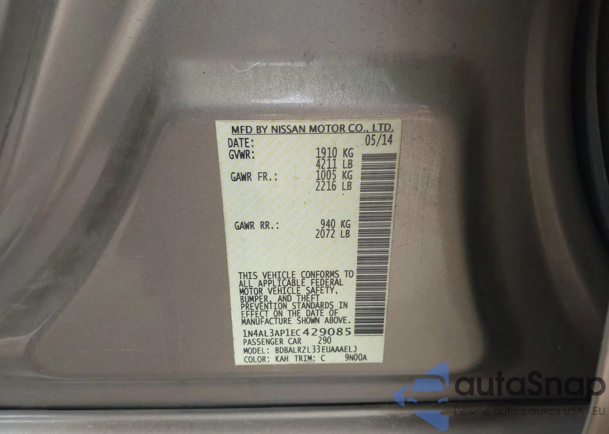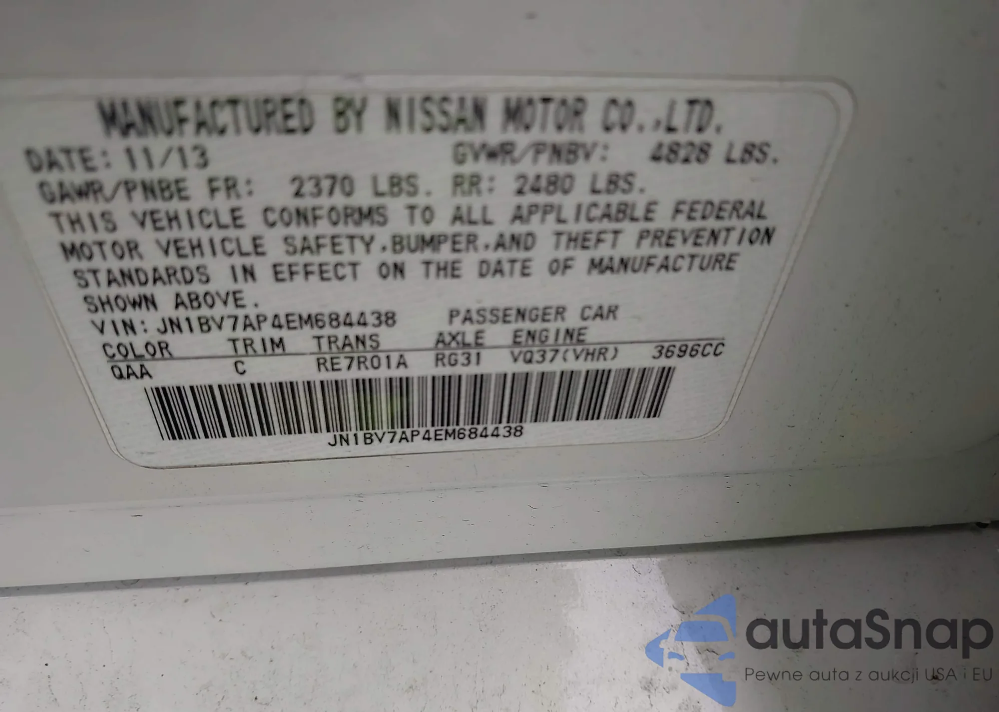 LOT: 43723338 VIN: JN1BV7AP4EM684438