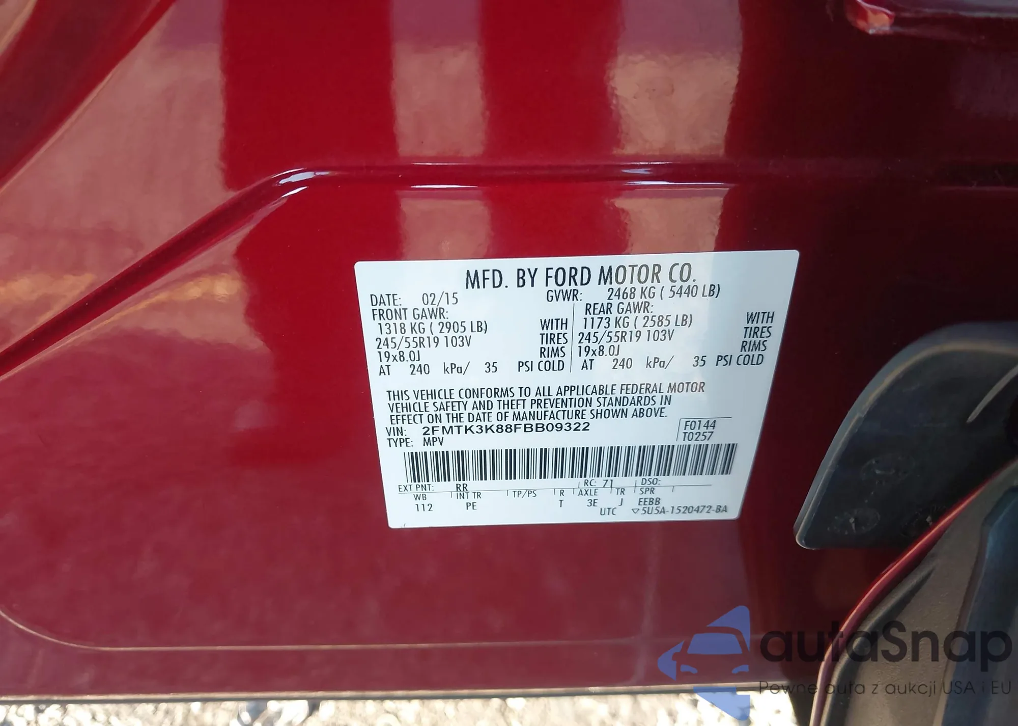 • VIN 2FMTK3K88FBB09322