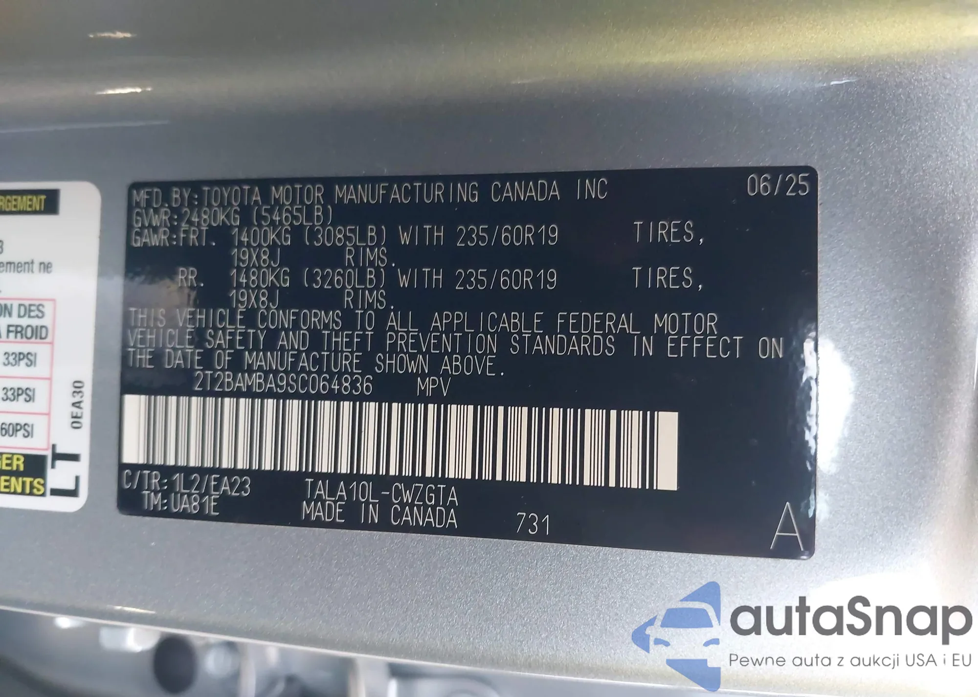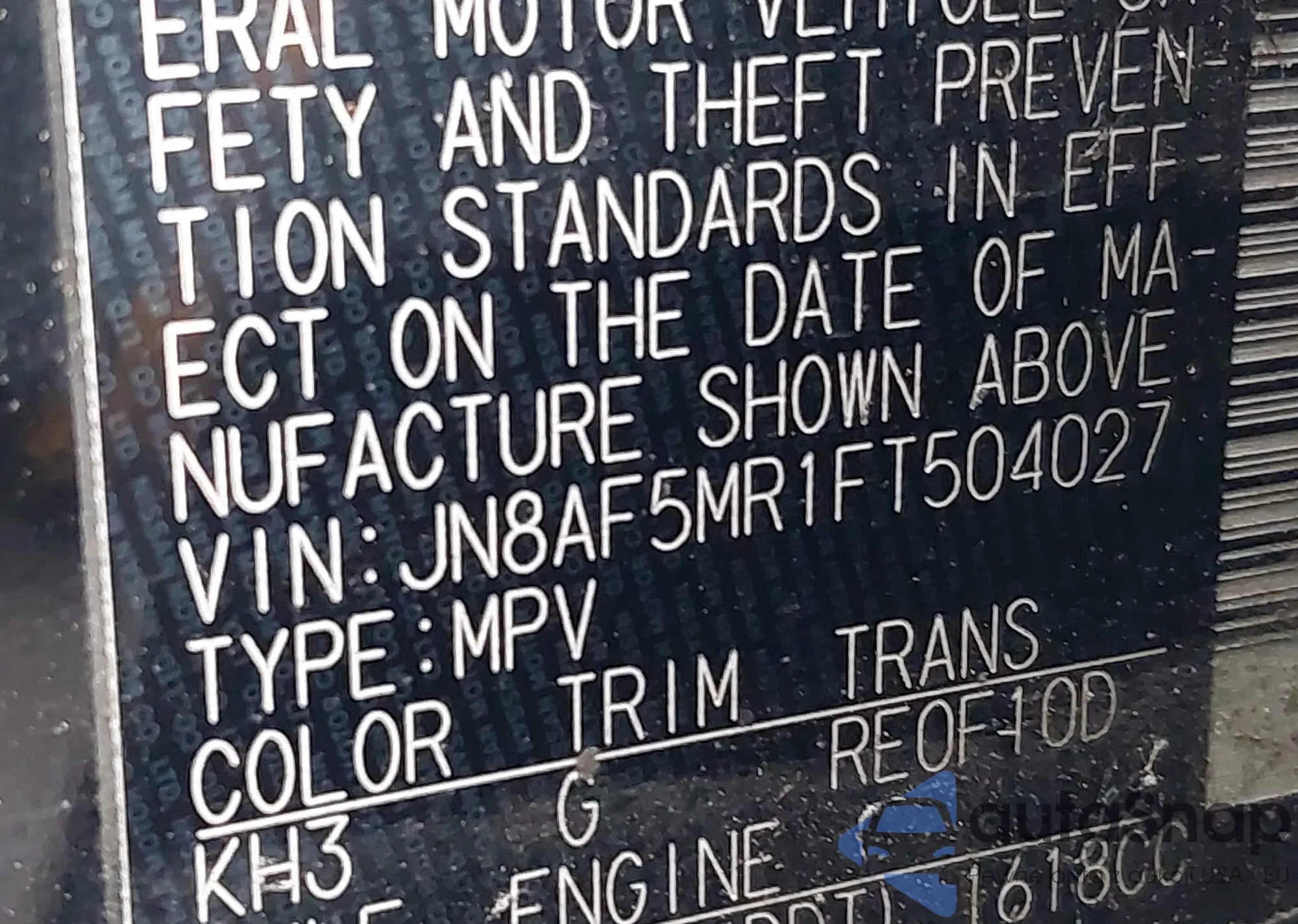 • VIN 5N1AT3BA7MC805416