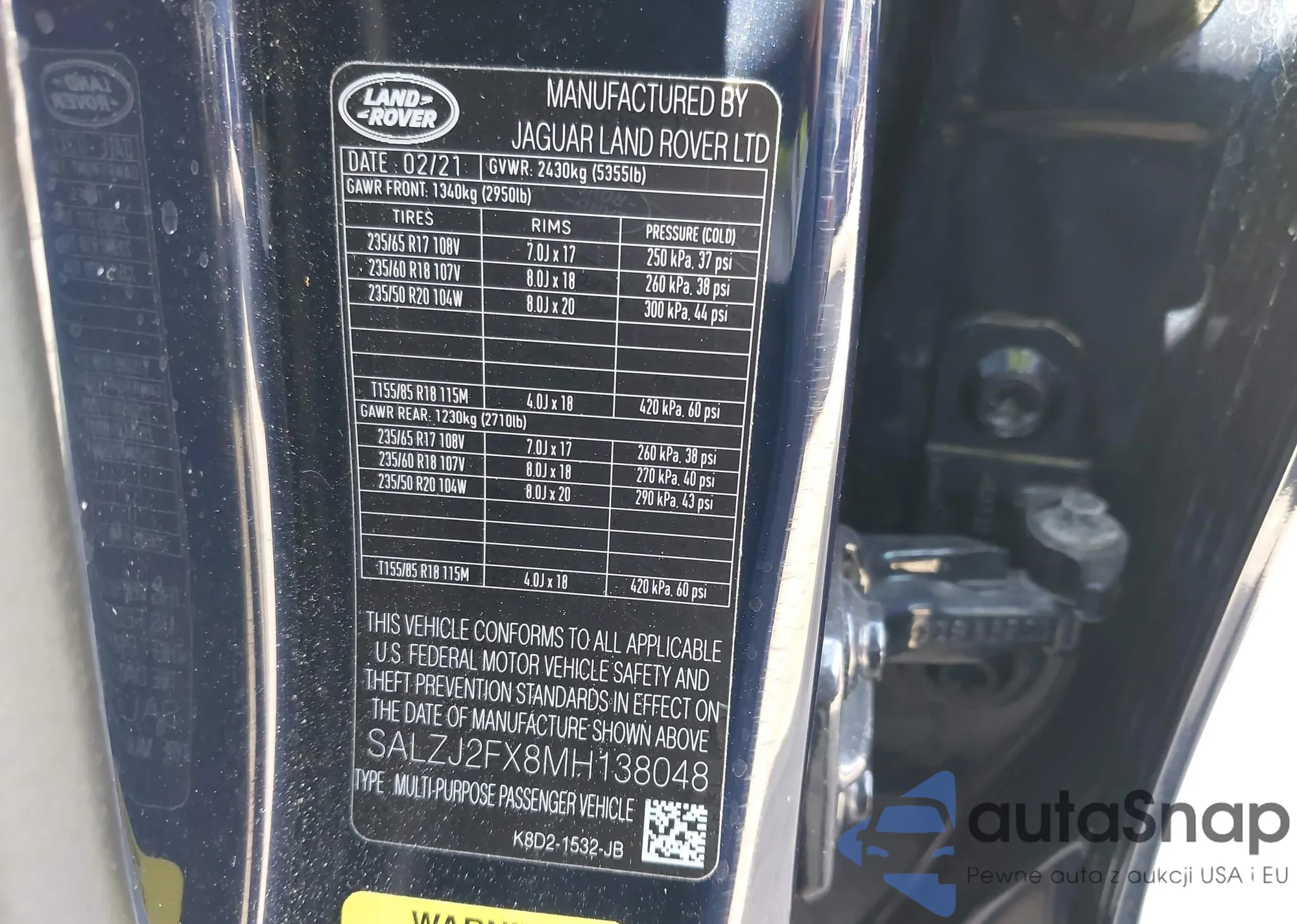 • VIN SALZJ2FX8MH138048