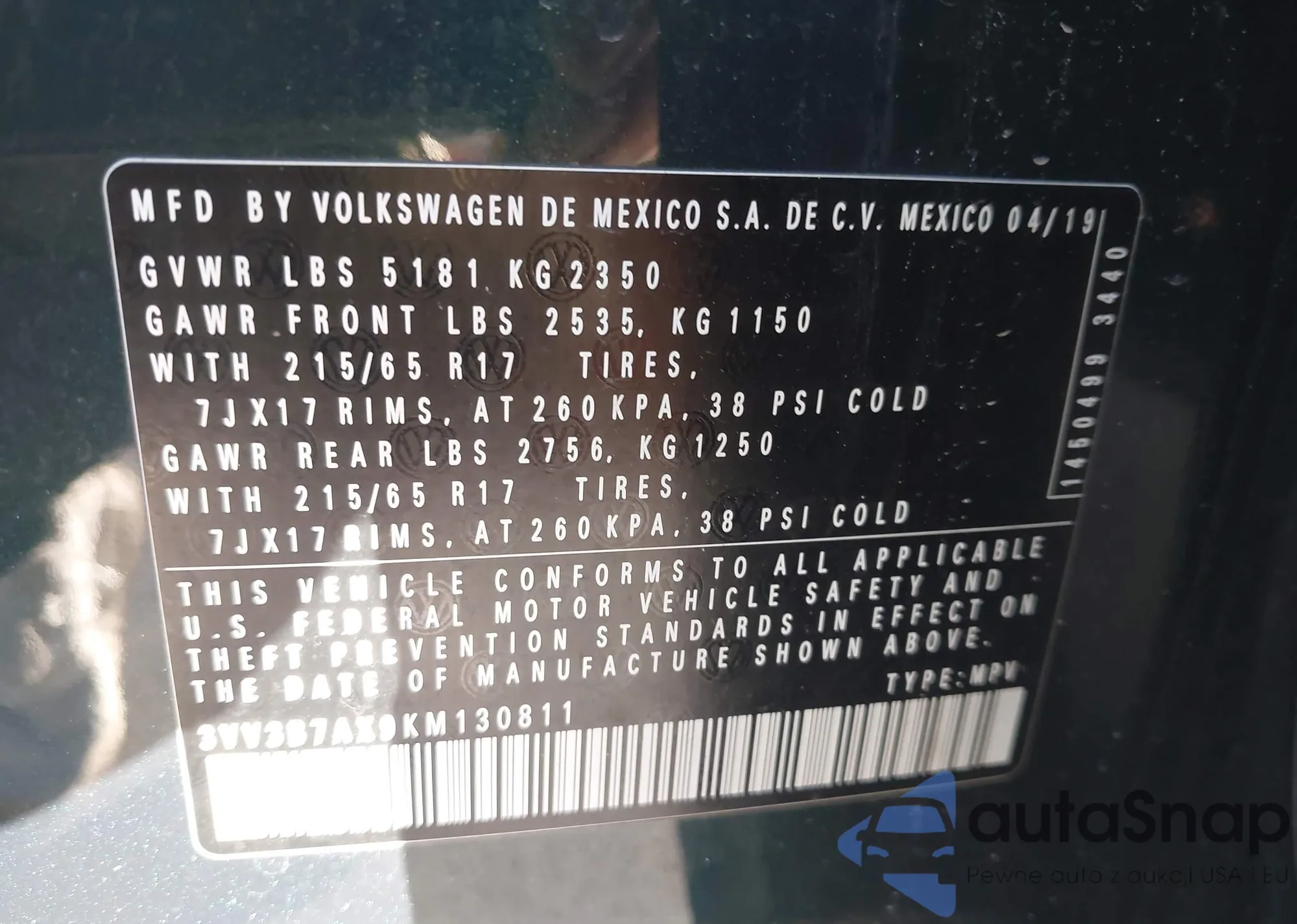 • VIN 3VV3B7AX9KM130811