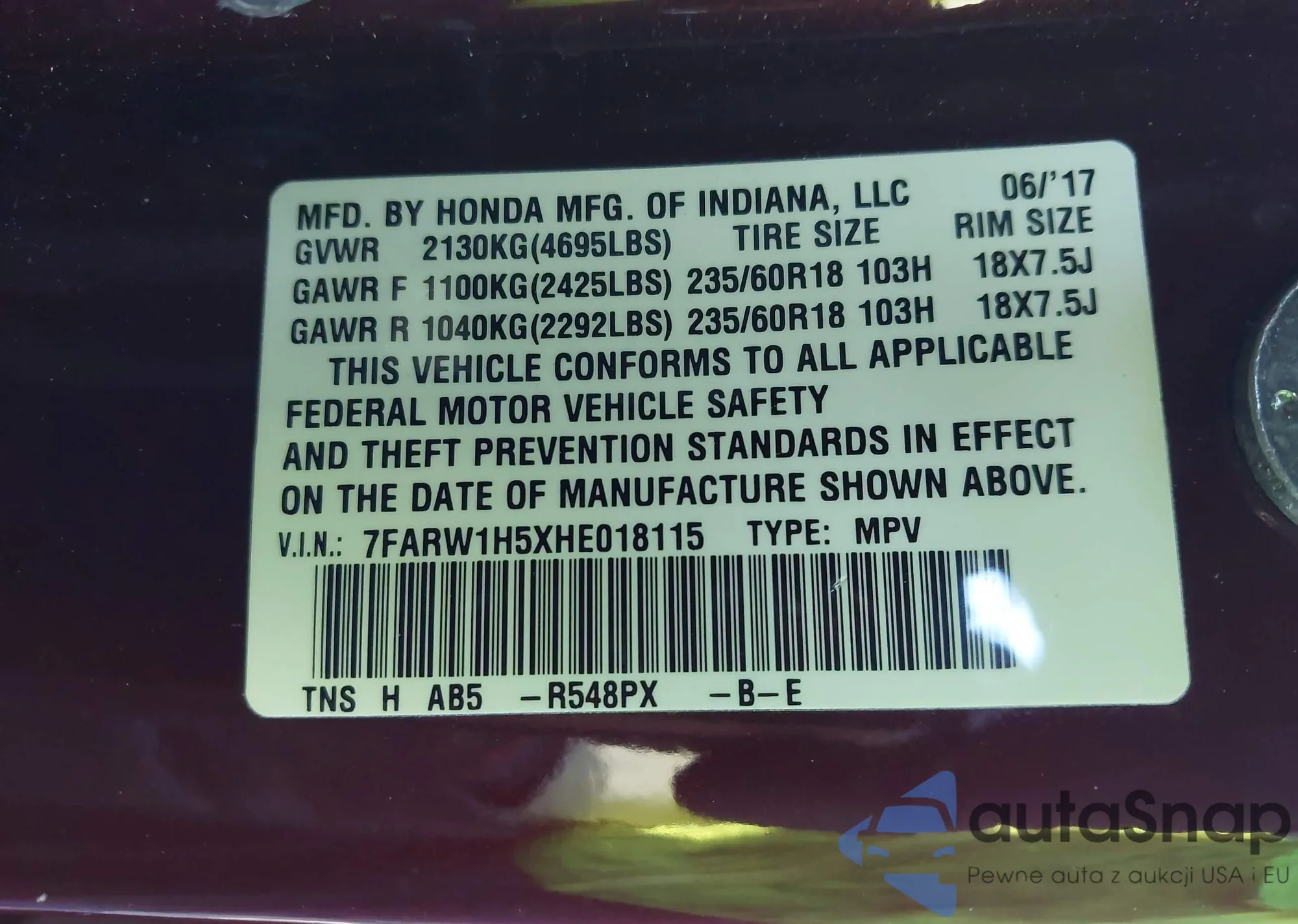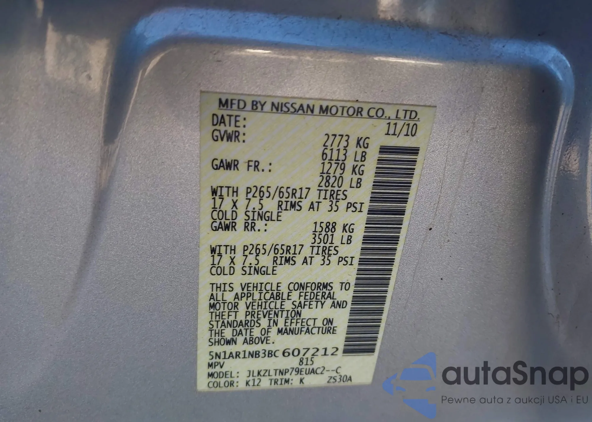 • VIN 5N1AR1NB3BC607212