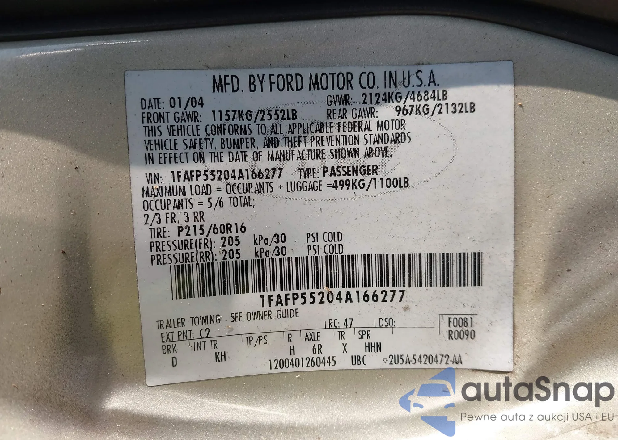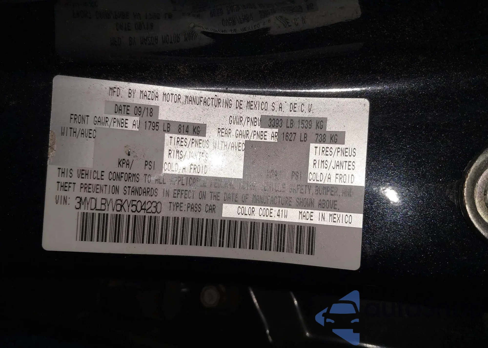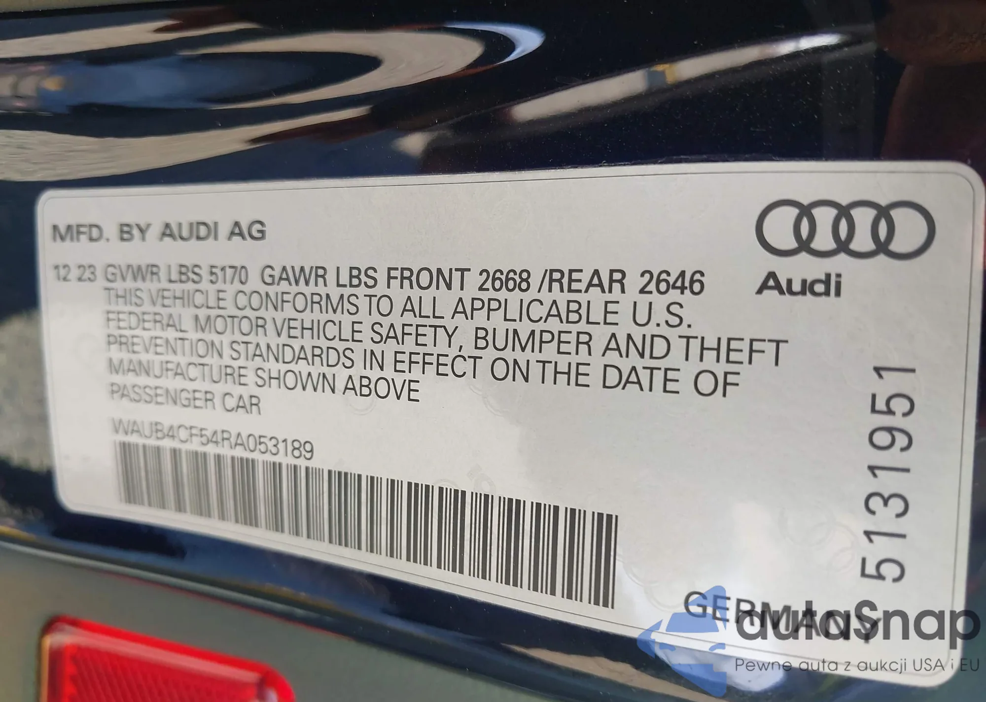 • VIN WAUB4CF54RA053189
