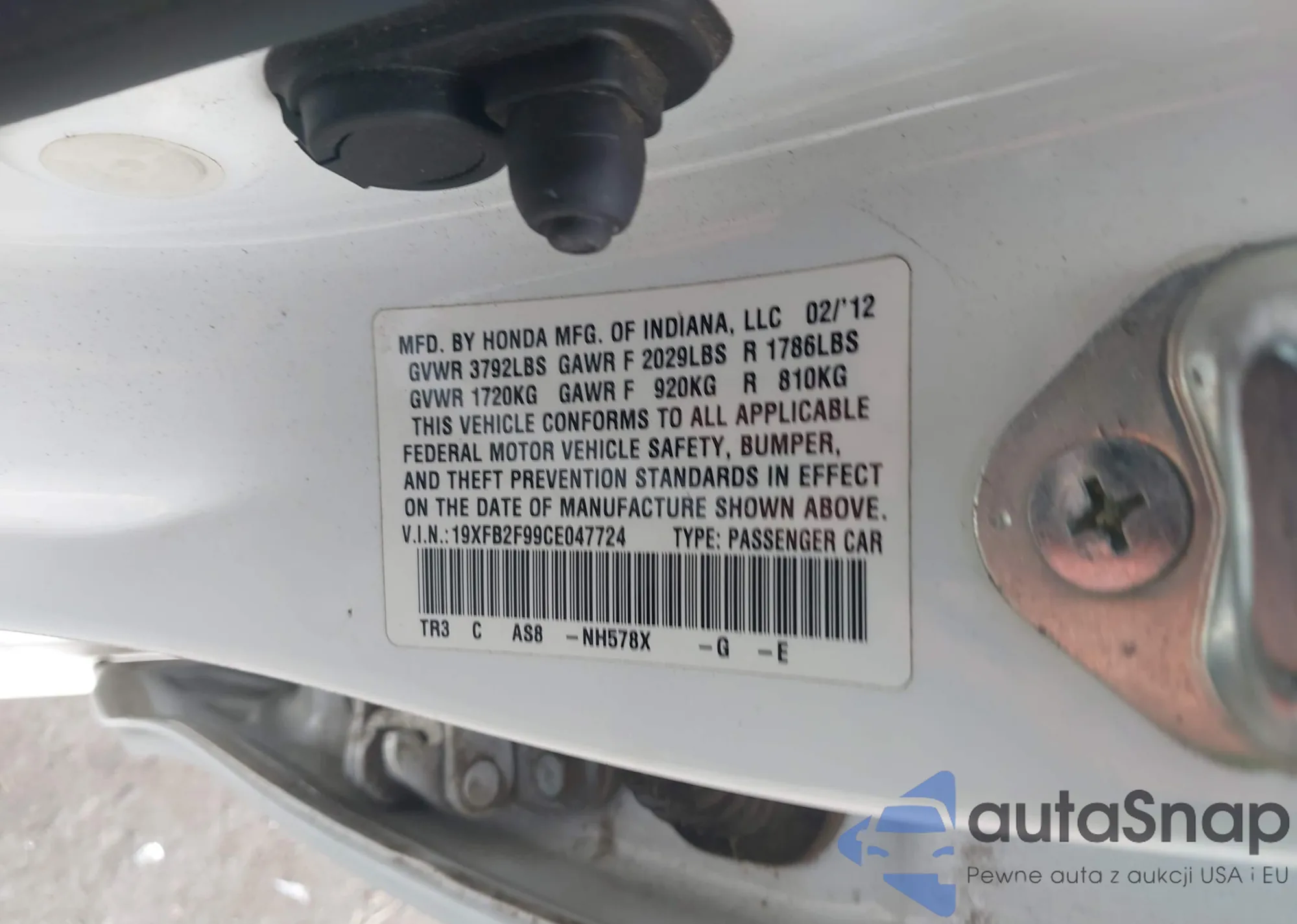 • VIN 19XFB2F99CE047724