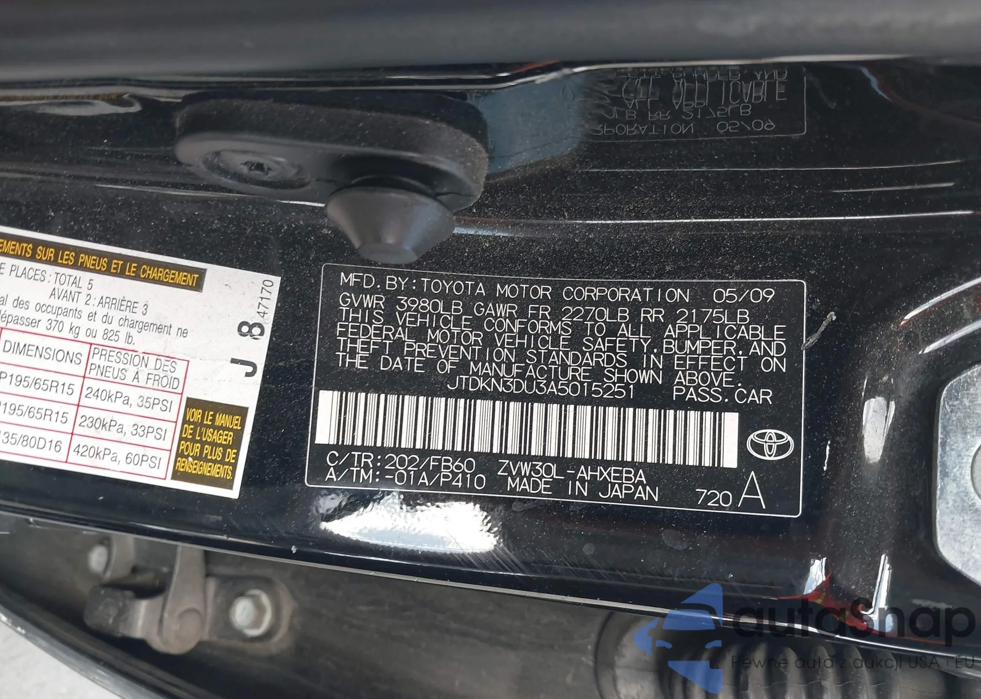 • VIN JTDKN3DU3A5015251
