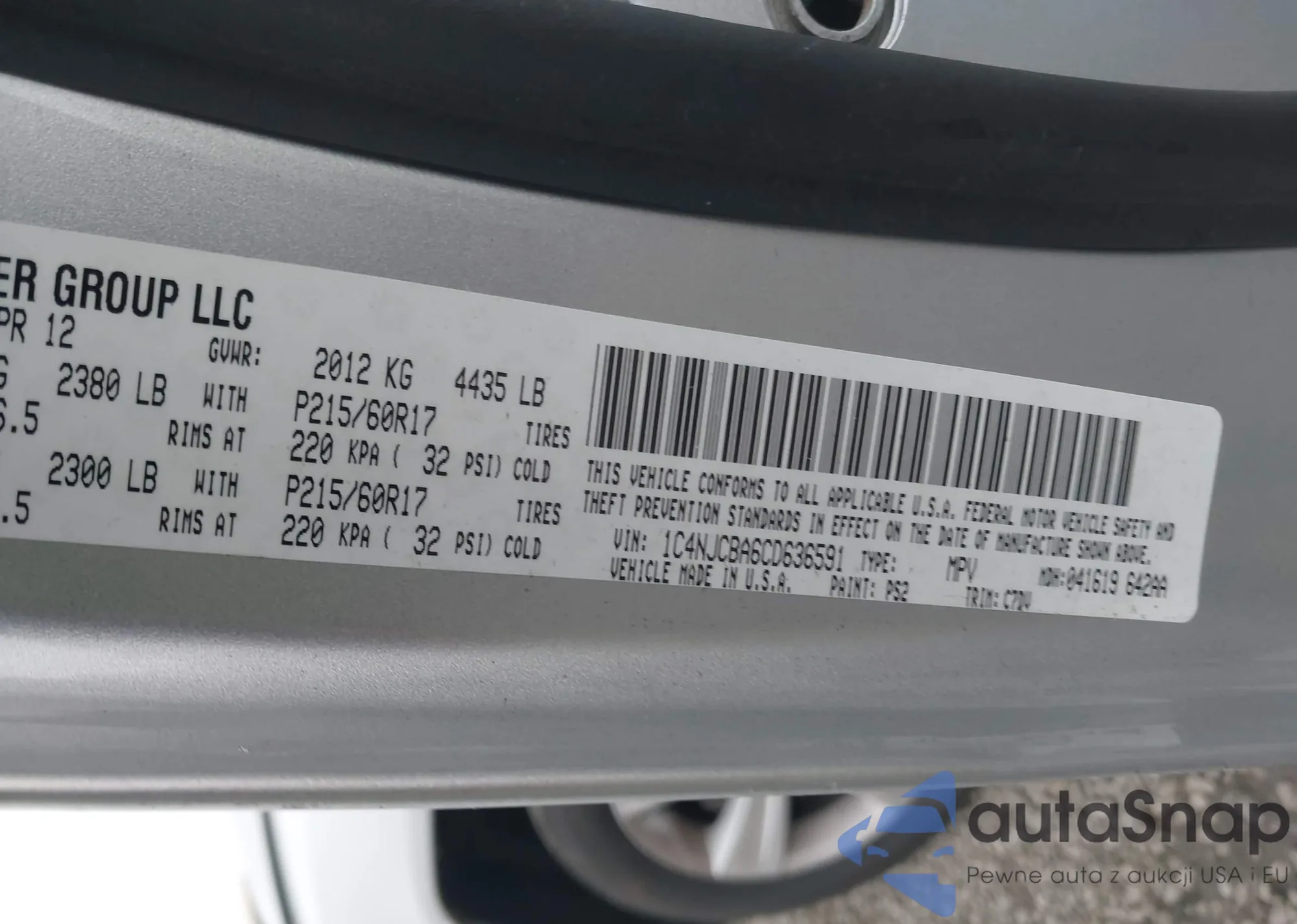 • VIN 1C4NJCBA6CD636591
