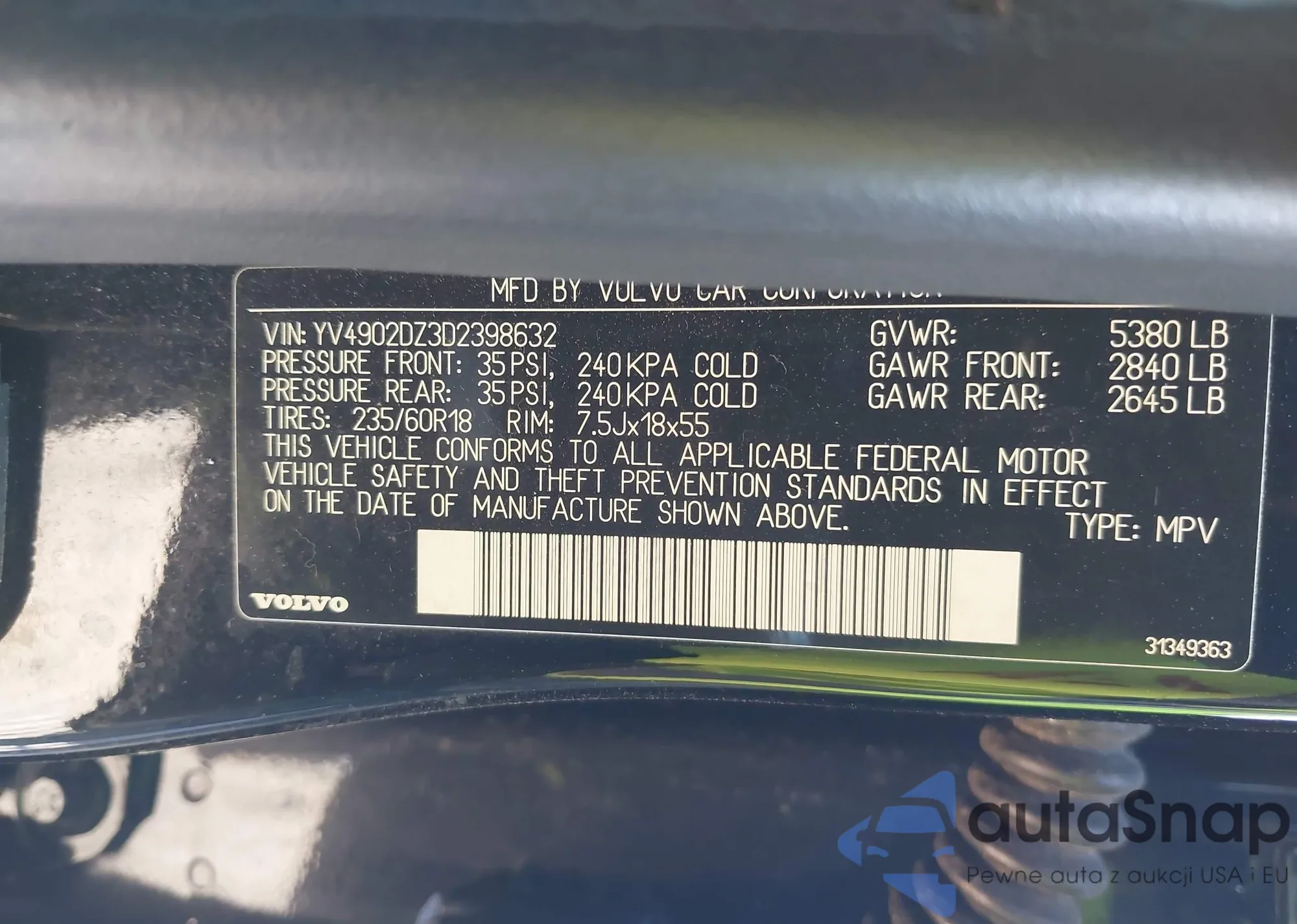 • VIN YV4902DZ3D2398632