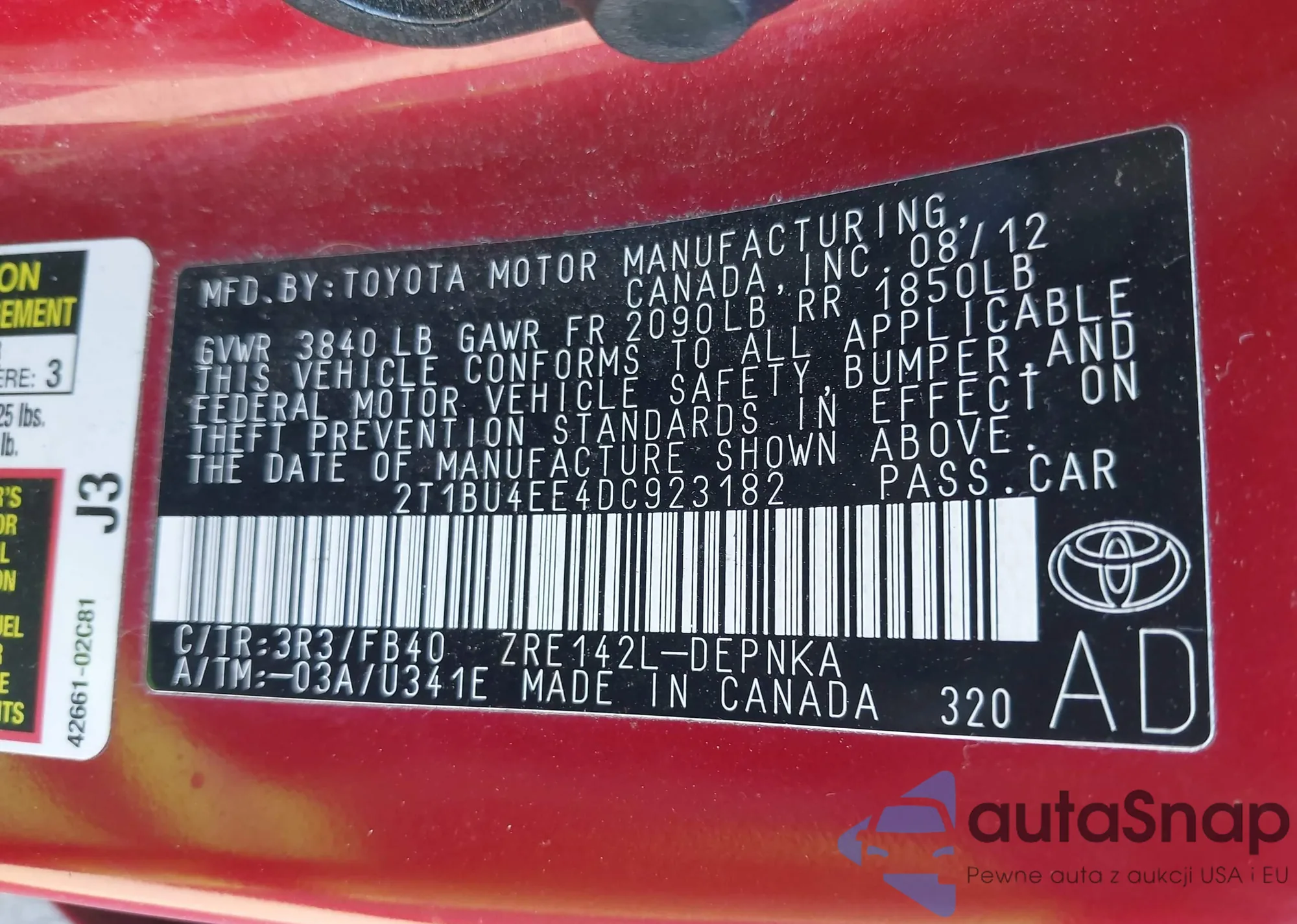 • VIN 4T1BF3EK1BU222718