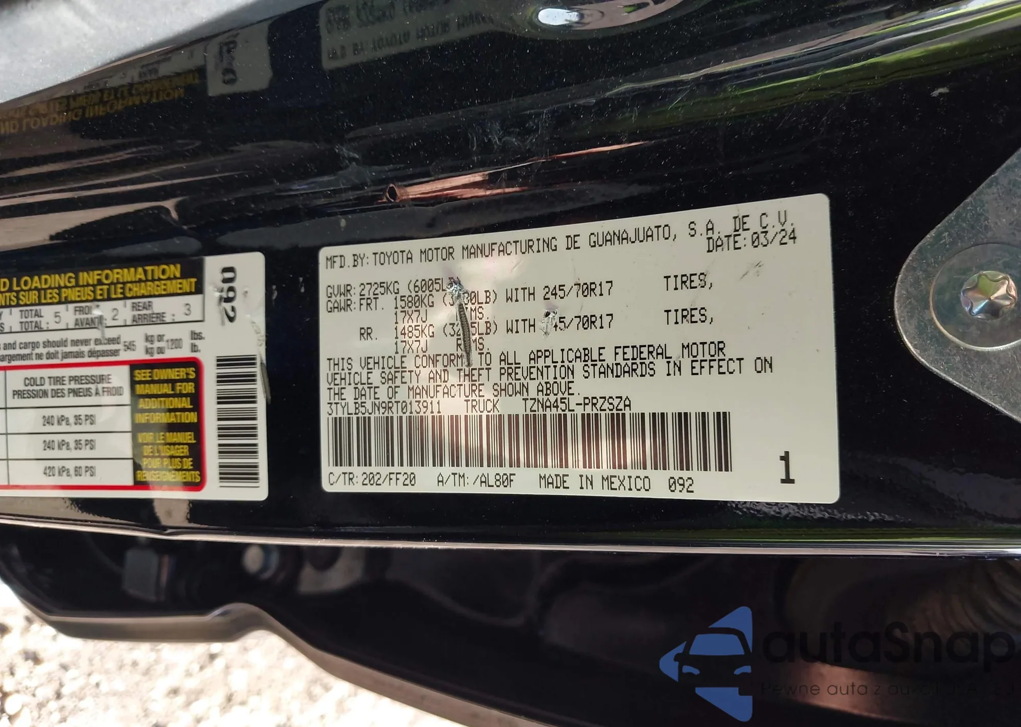 • VIN 3TYLB5JN9RT013911