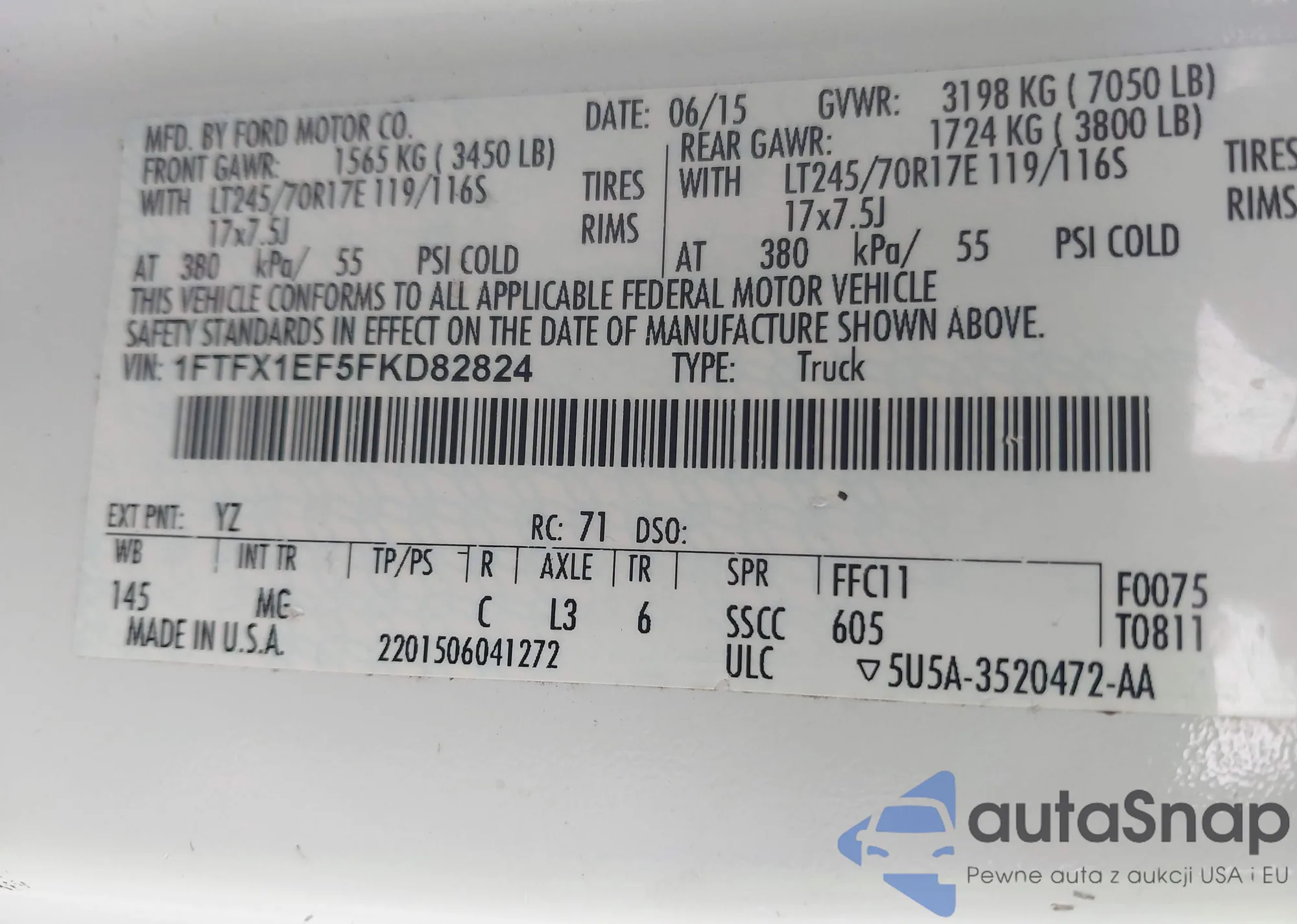 LOT: 43667902 VIN: 1FTFX1EF5FKD82824