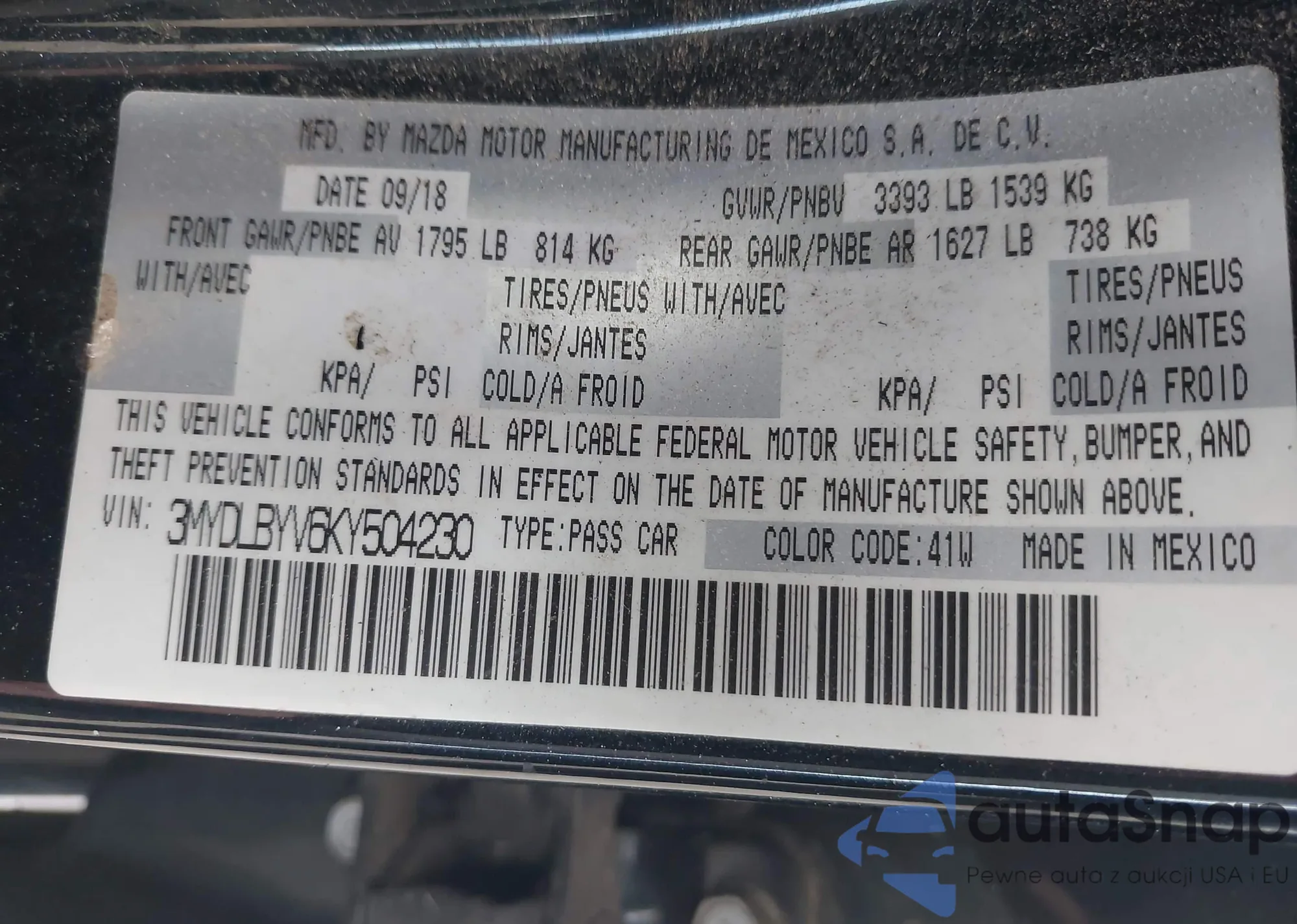 LOT: 43355206 VIN: WAUB4CF54RA053189