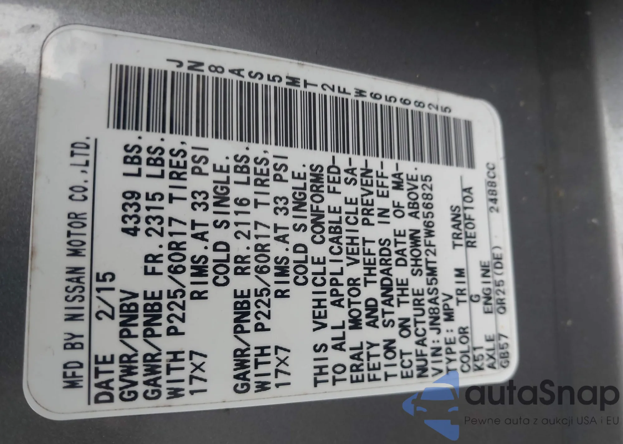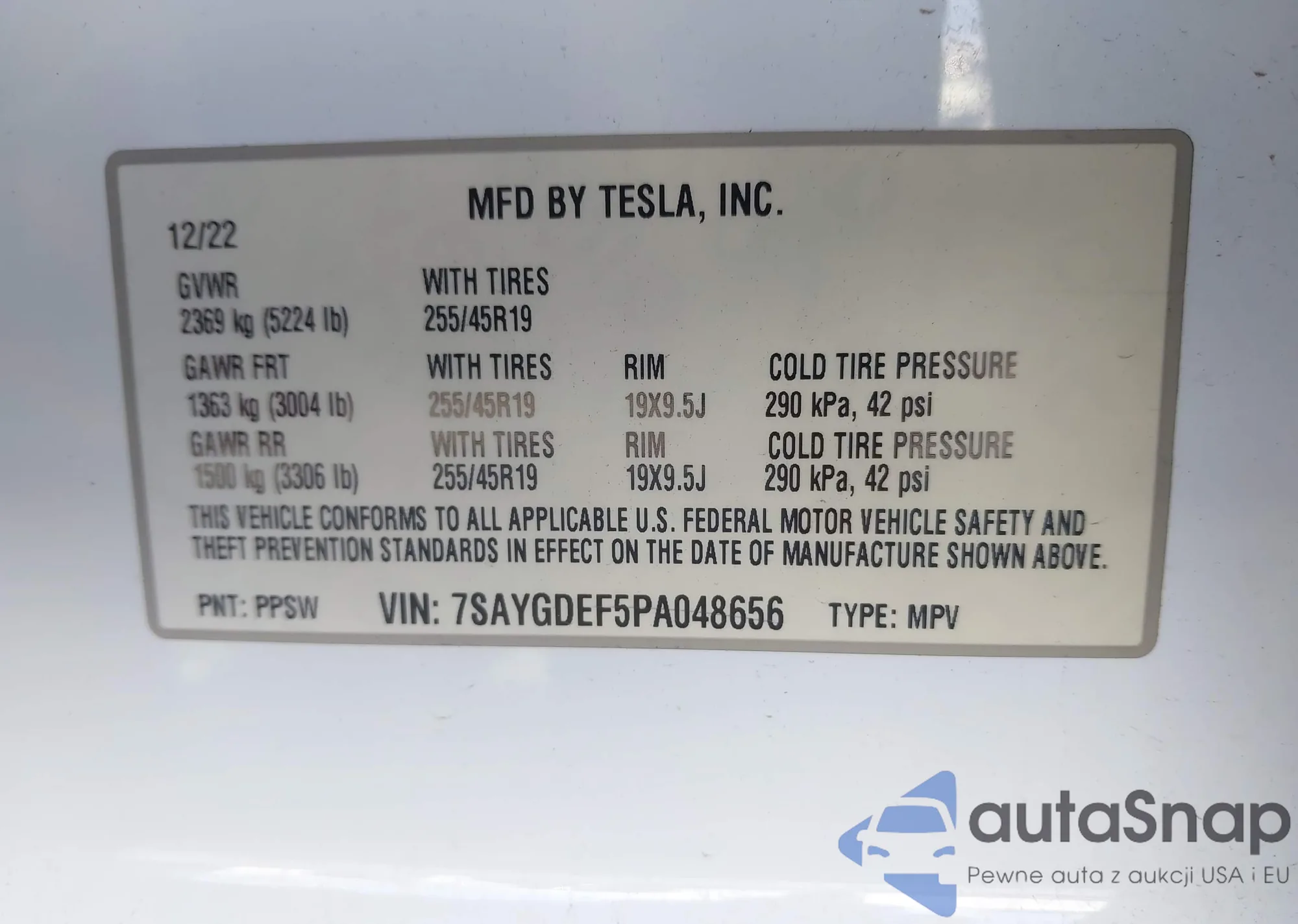 • VIN 7SAYGDEF5PA048656