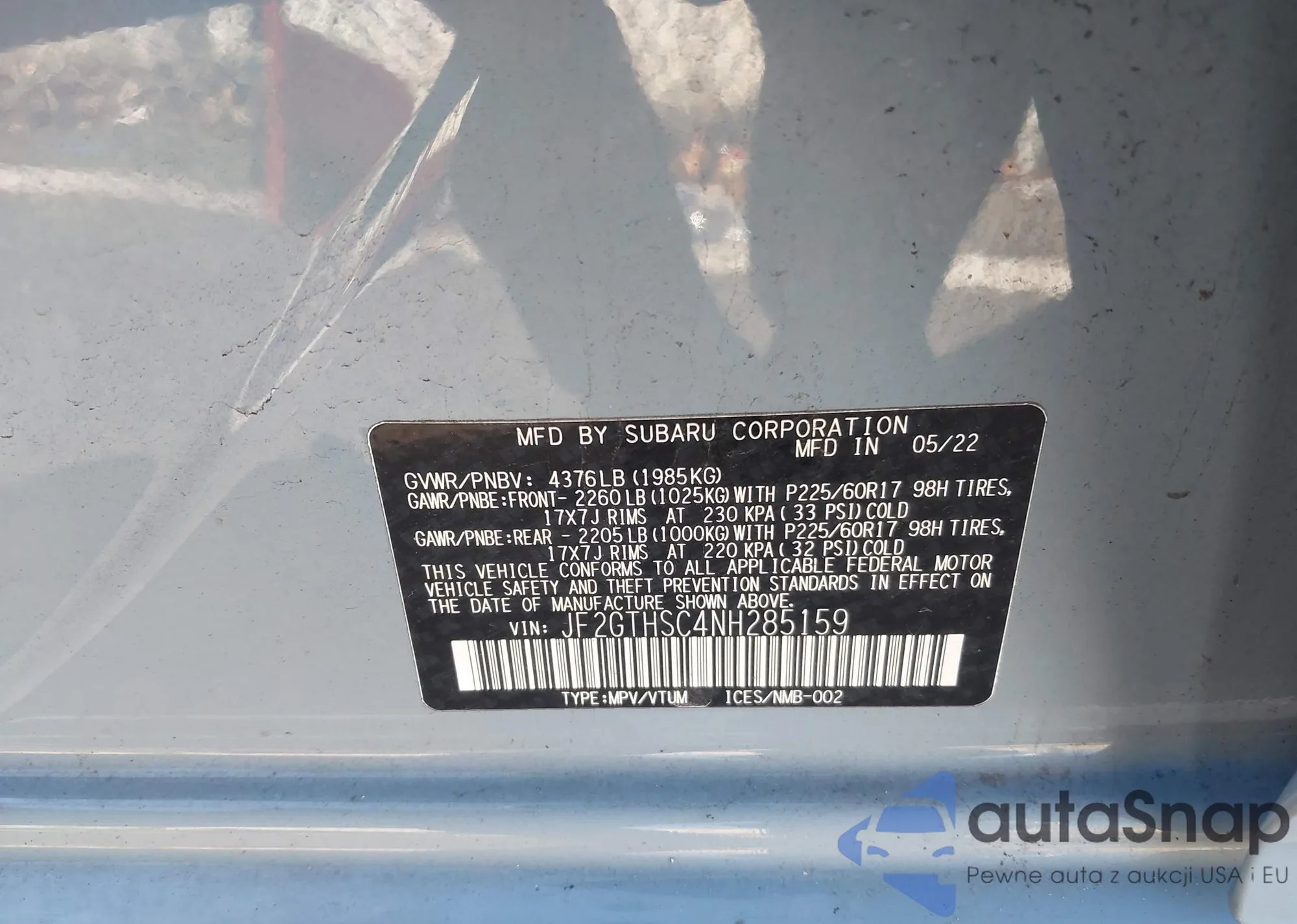 • VIN JF2GTHSC4NH285159