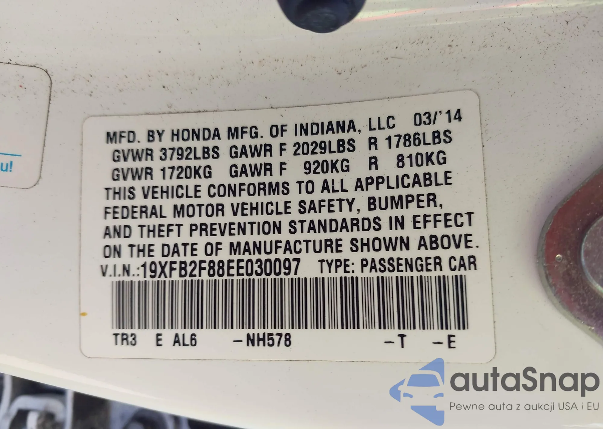 LOT: 43774774 VIN: 19XFB2F88EE030097