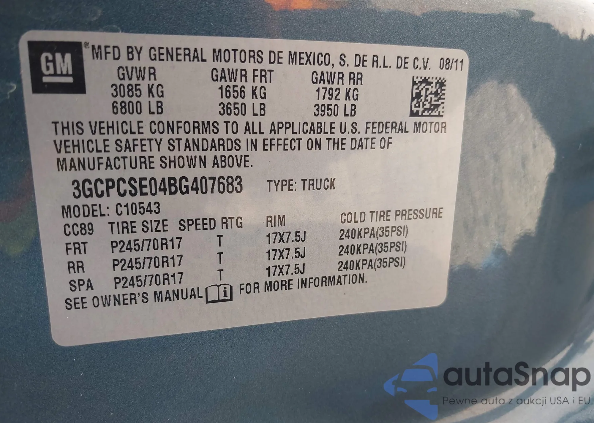 • VIN 3GCPCSE04BG407683