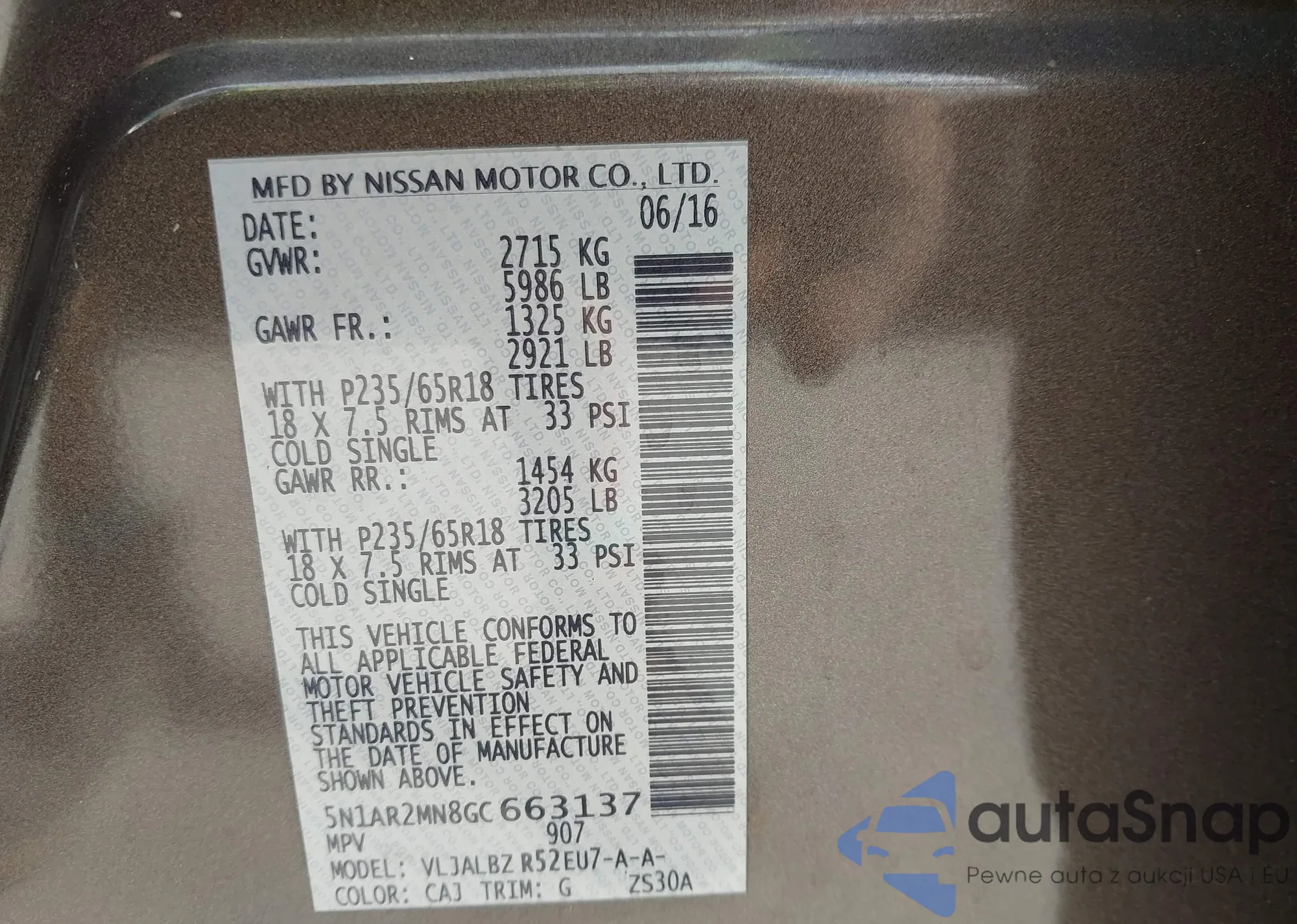 • VIN 5N1AR2MN8GC663137