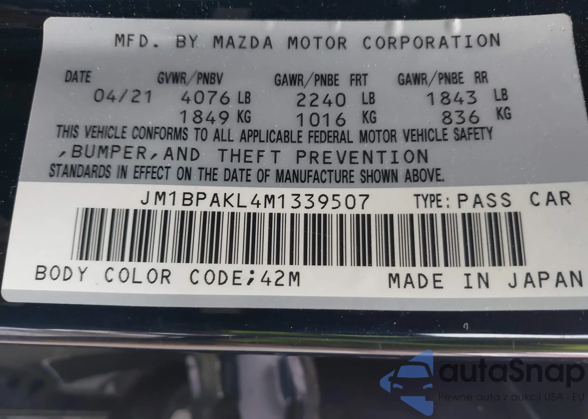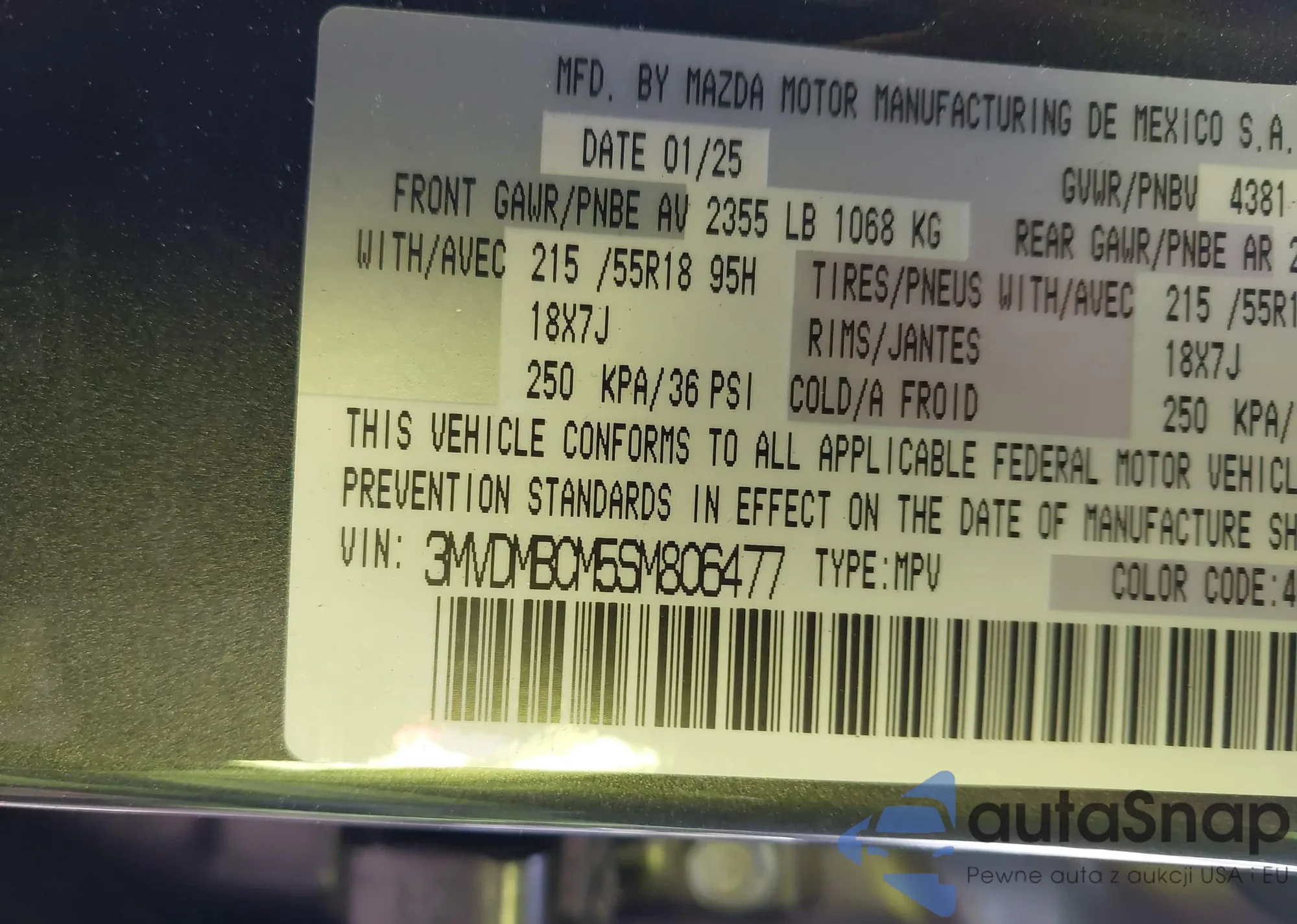 • VIN 3MVDMBCM5SM806477