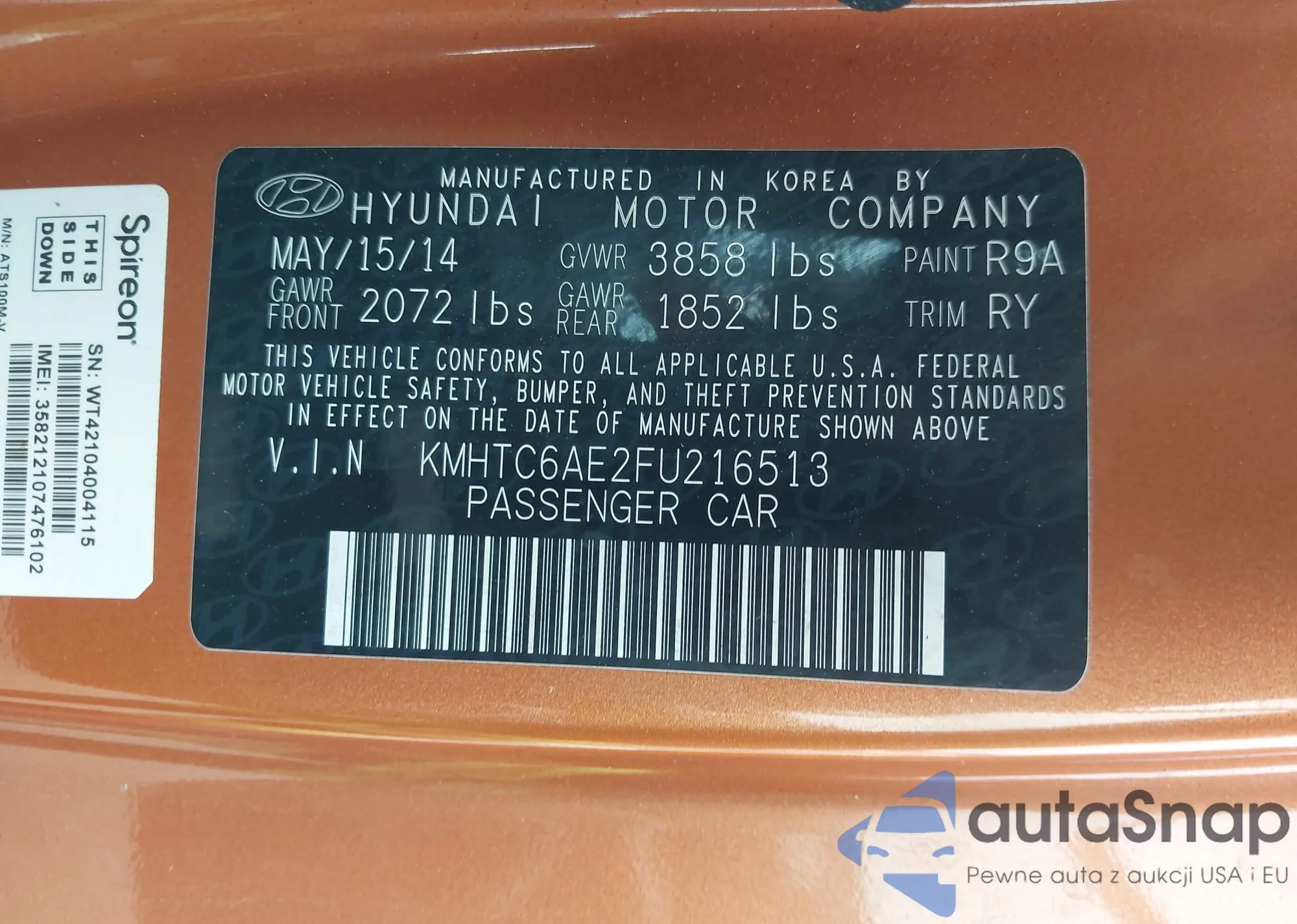 • VIN KMHTC6AE2FU216513