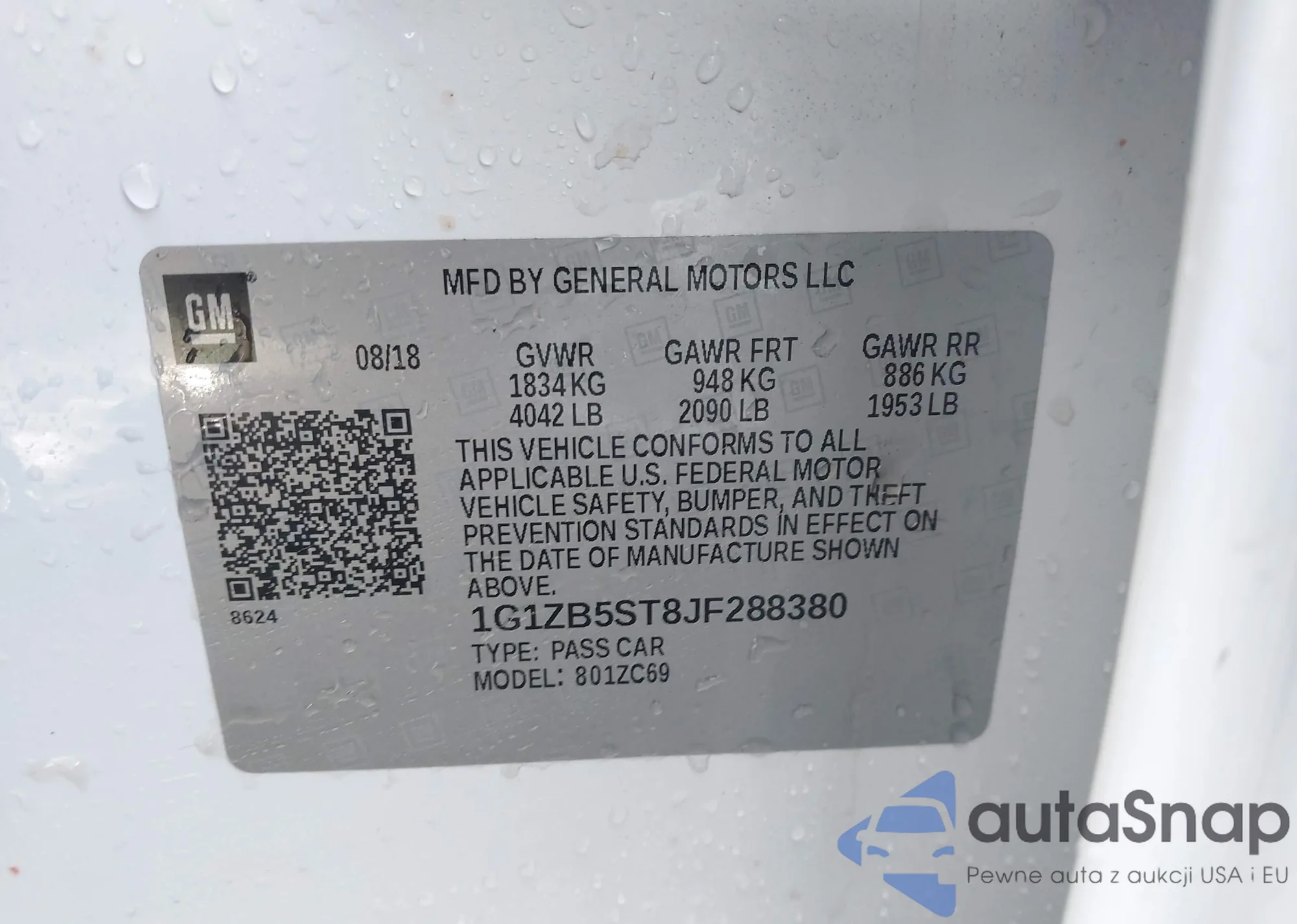 • VIN 1G1ZB5ST8JF288380