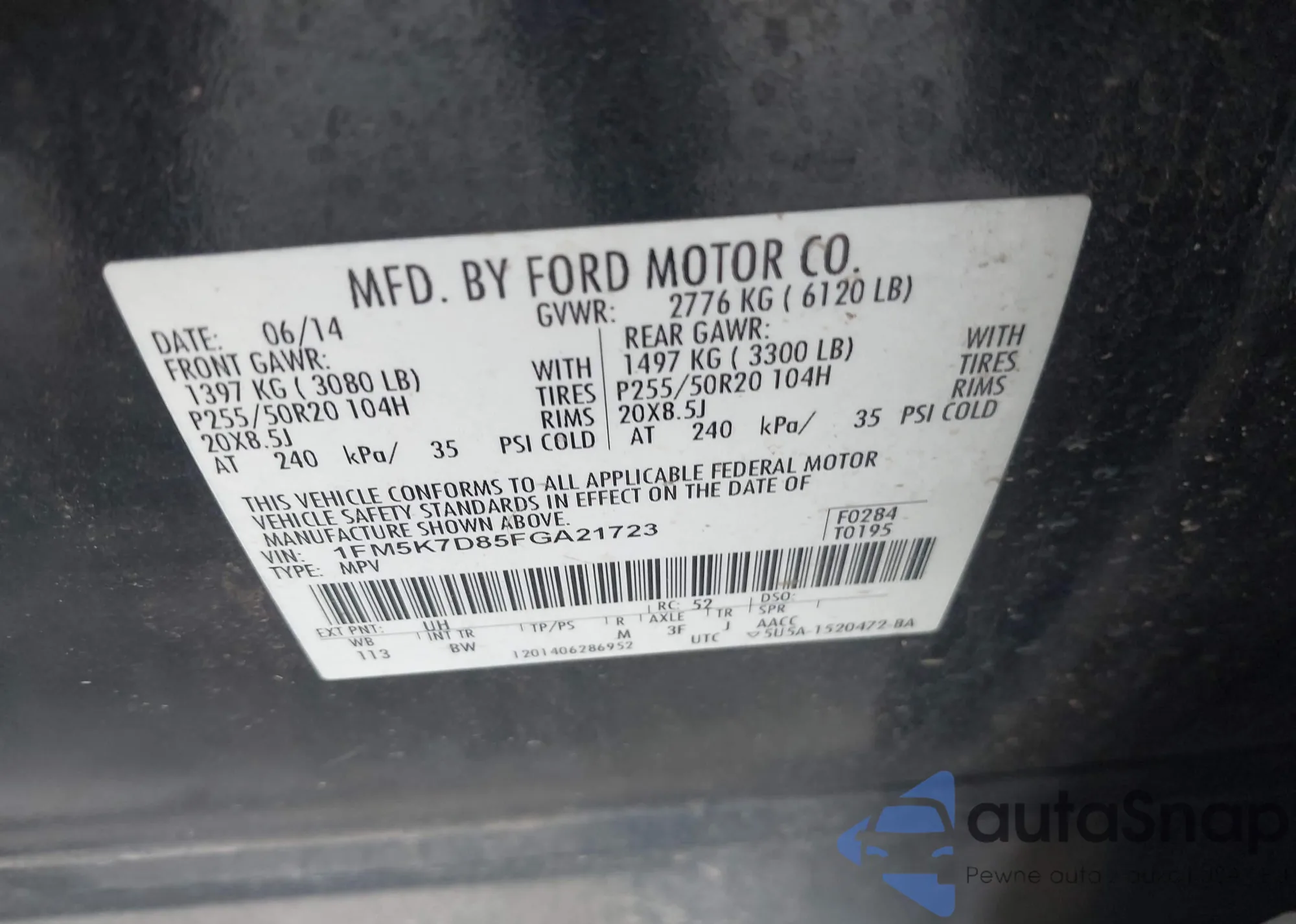 • VIN 1FM5K7D85FGA21723