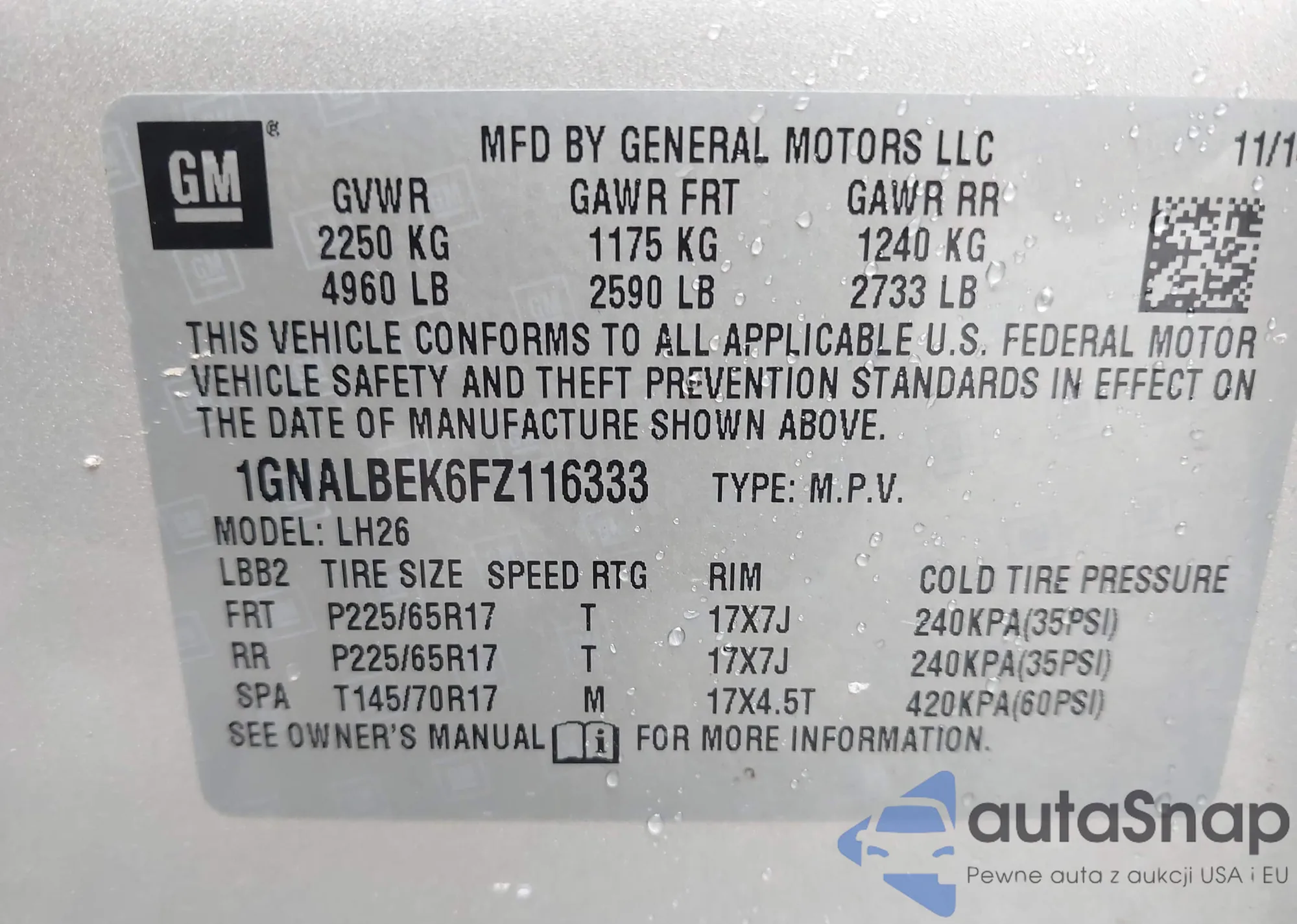 LOT: 43773686 VIN: 1GCVKREC9FZ445008