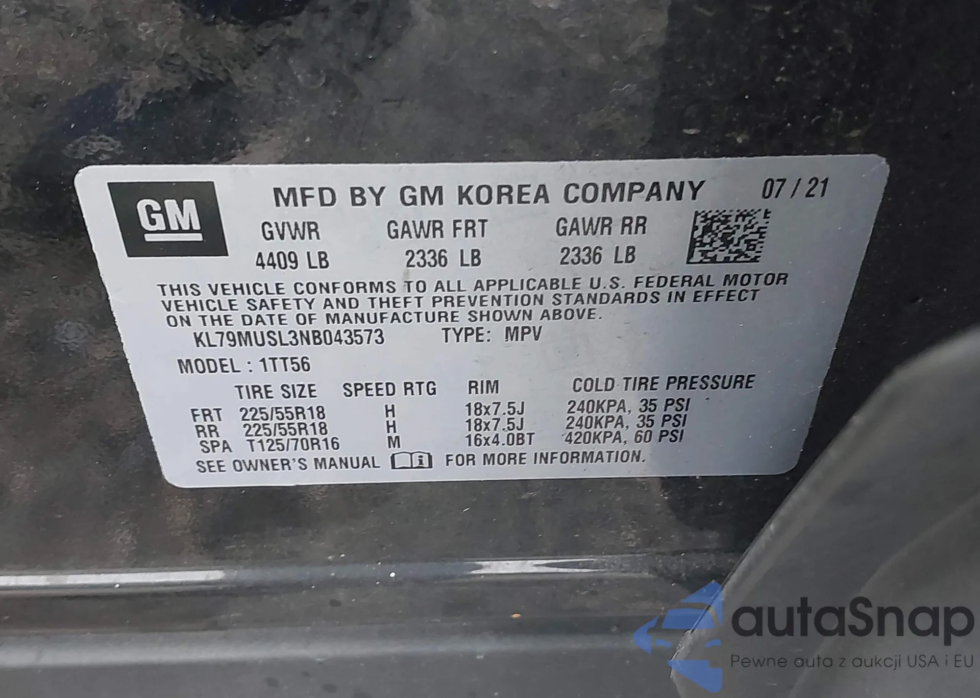 LOT: 43455033 VIN: KNDP63AC7L7801737