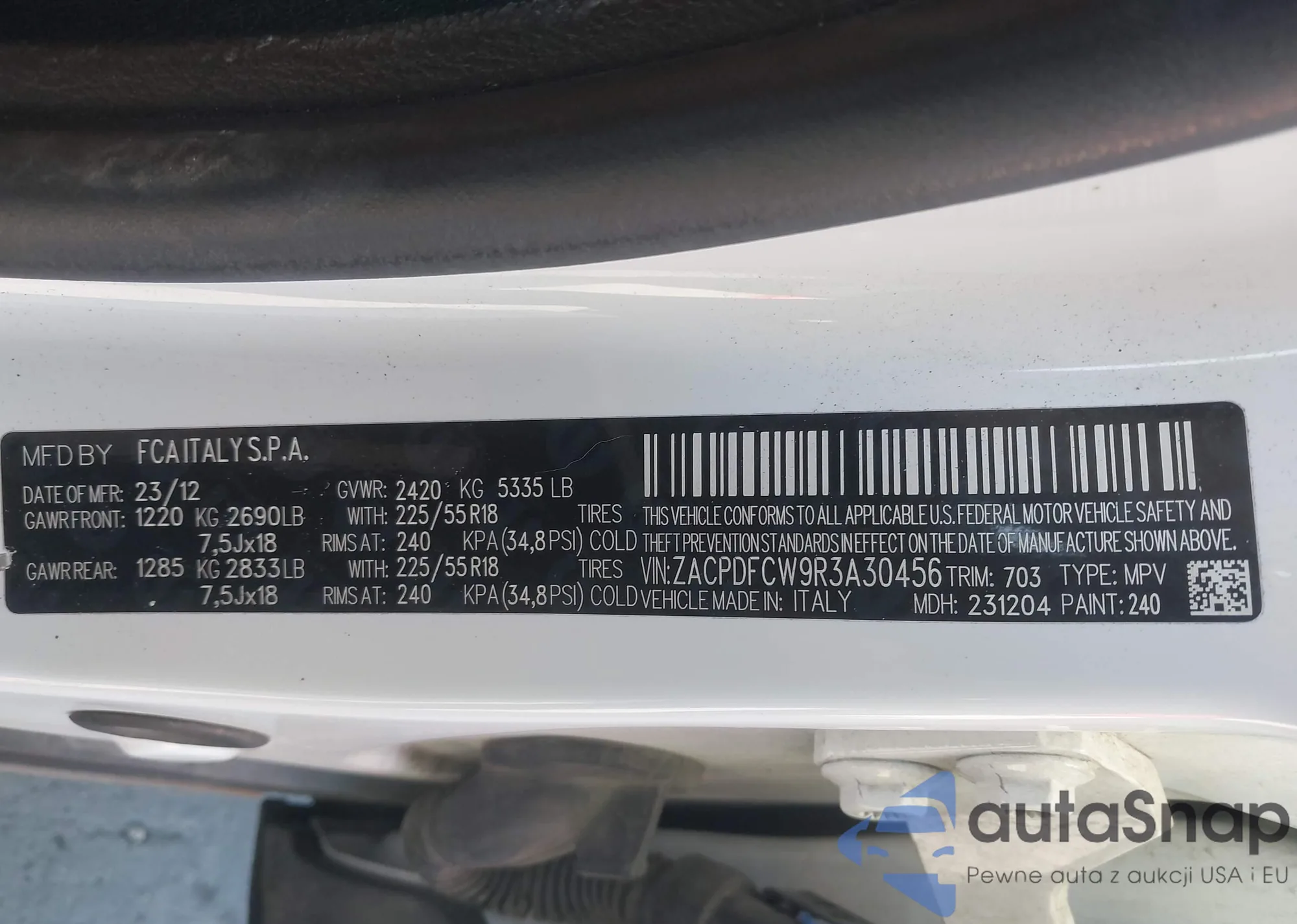 • VIN ZACPDFCW9R3A30456