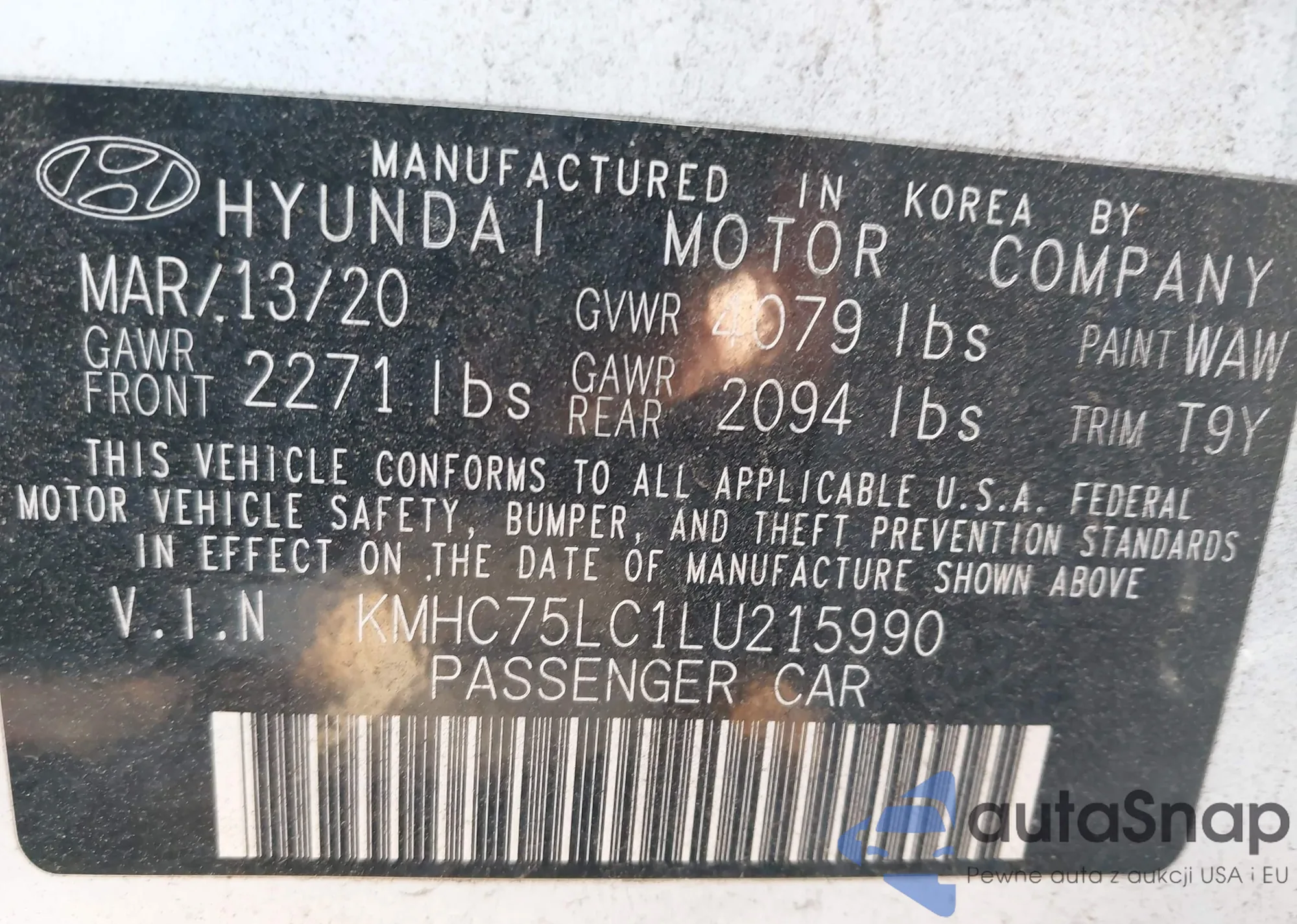 LOT: 43931604 VIN: KMHC75LC1LU215990