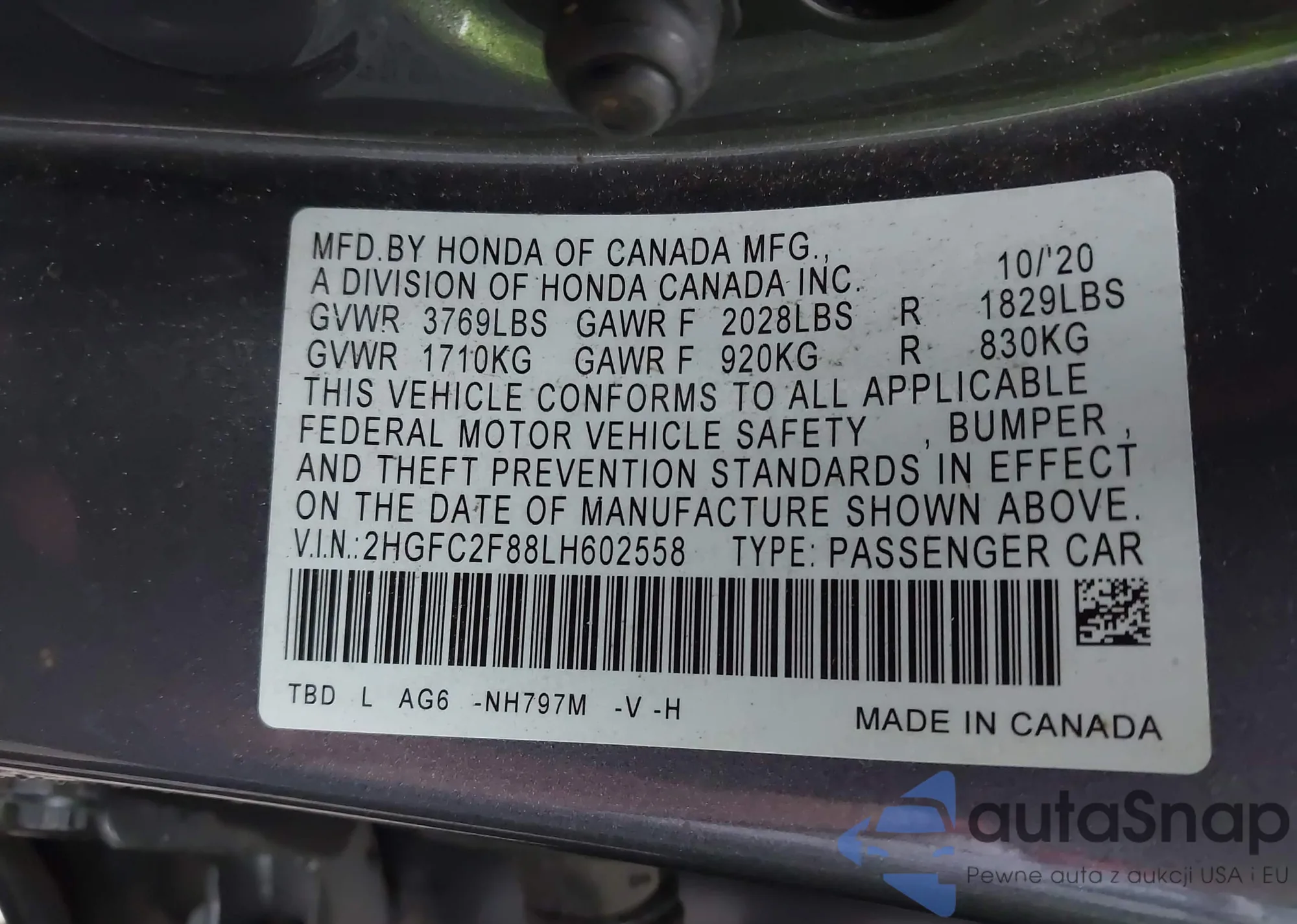 • VIN 2HGFC2F88LH602558