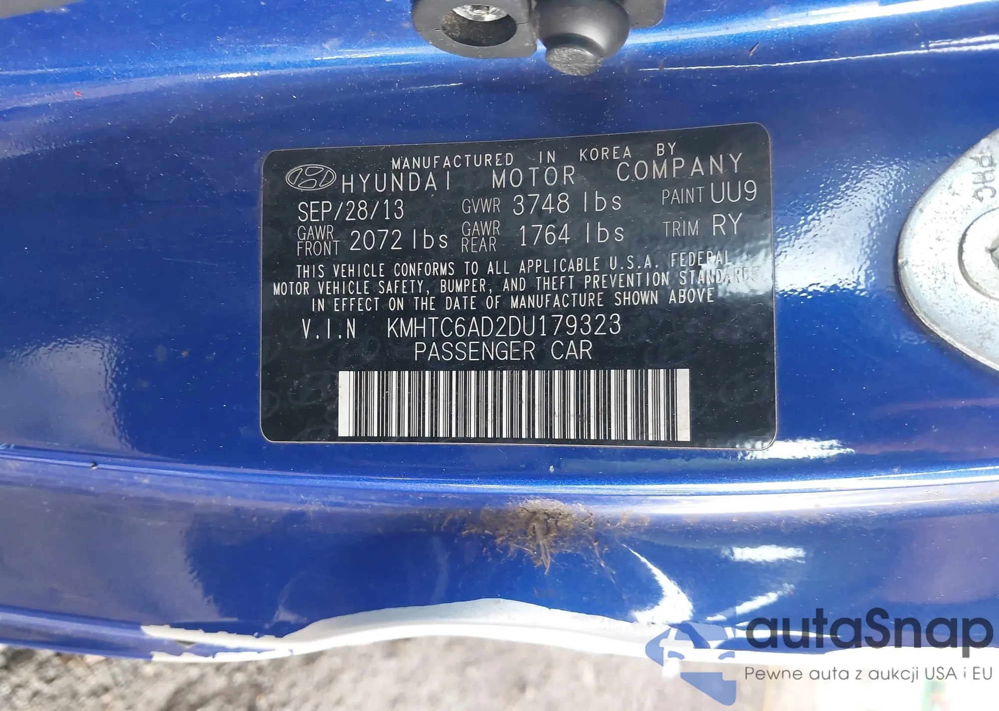 • VIN KMHTC6AD2DU179323