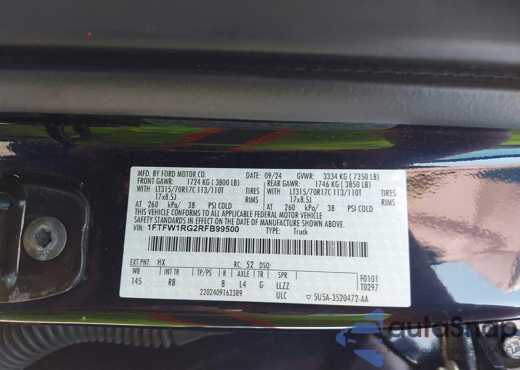 • VIN 1FTFW1RG2RFB99500