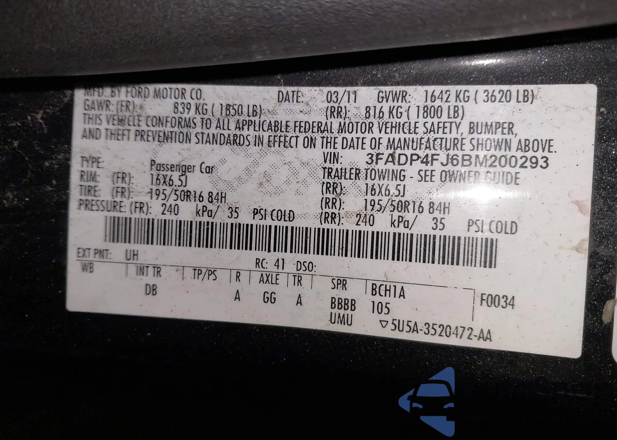 • VIN 3FADP4FJ6BM200293