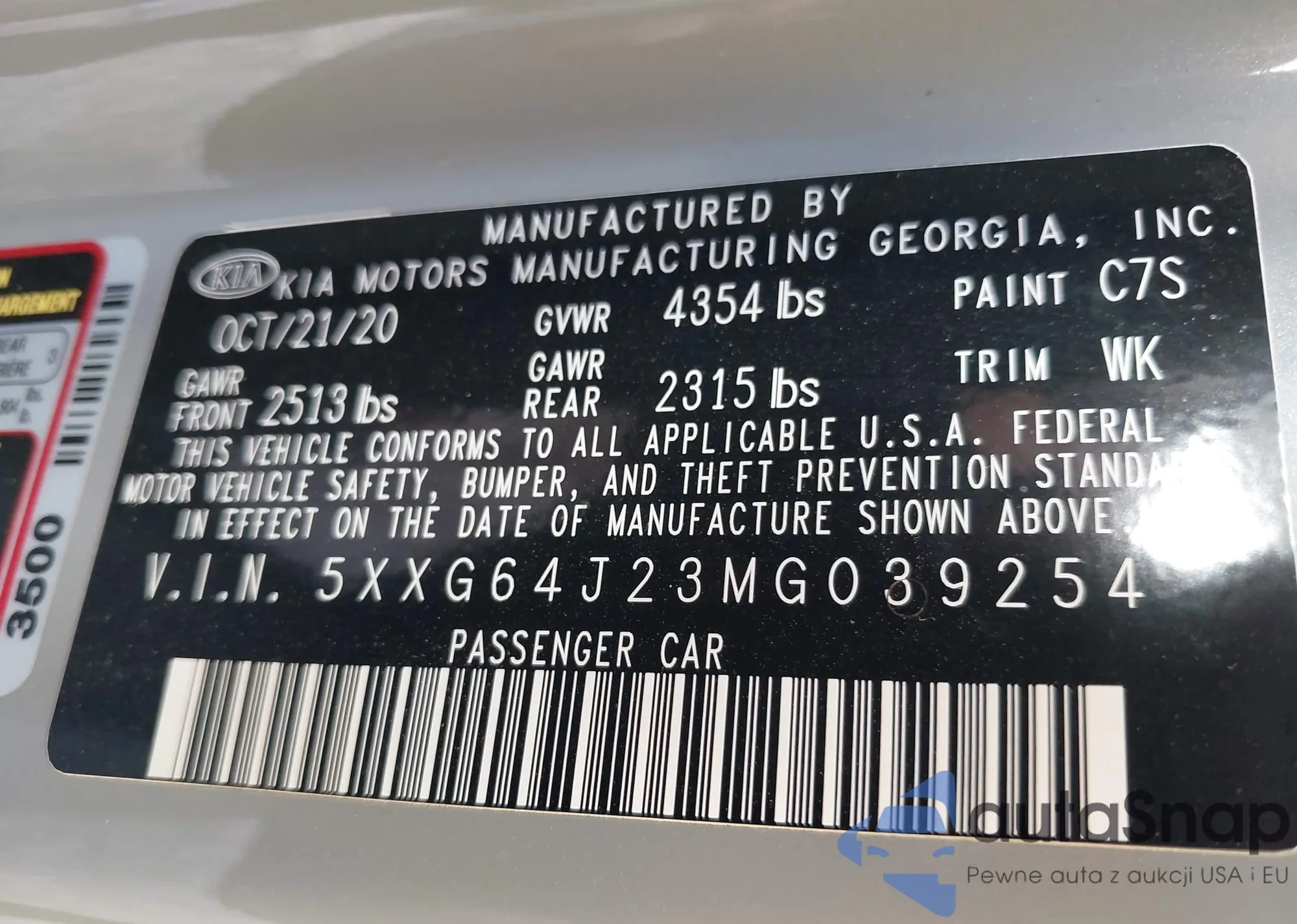 • VIN 5XXG64J23MG039254