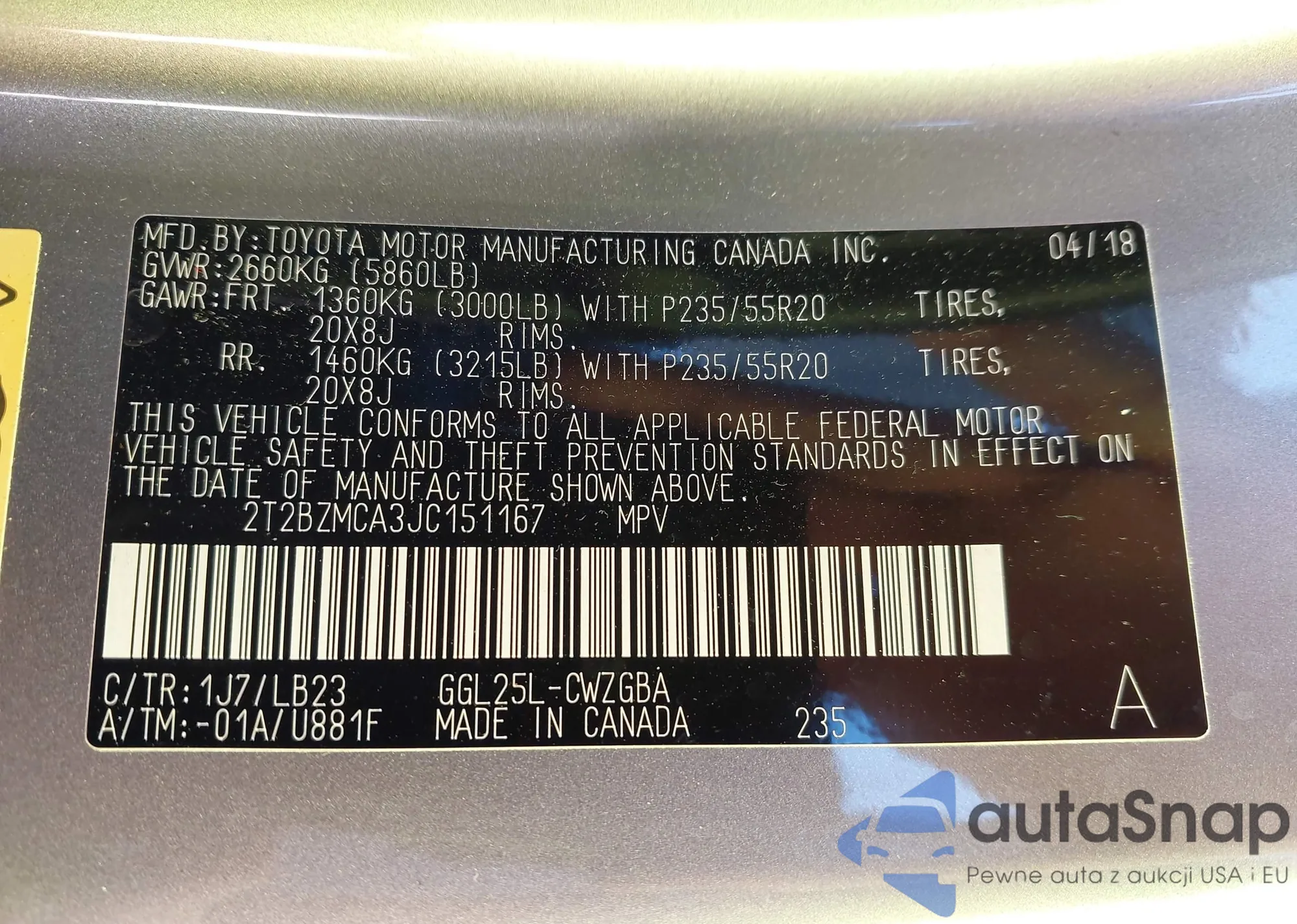 LOT: 43532452 VIN: 2T3RFREV4FW341596