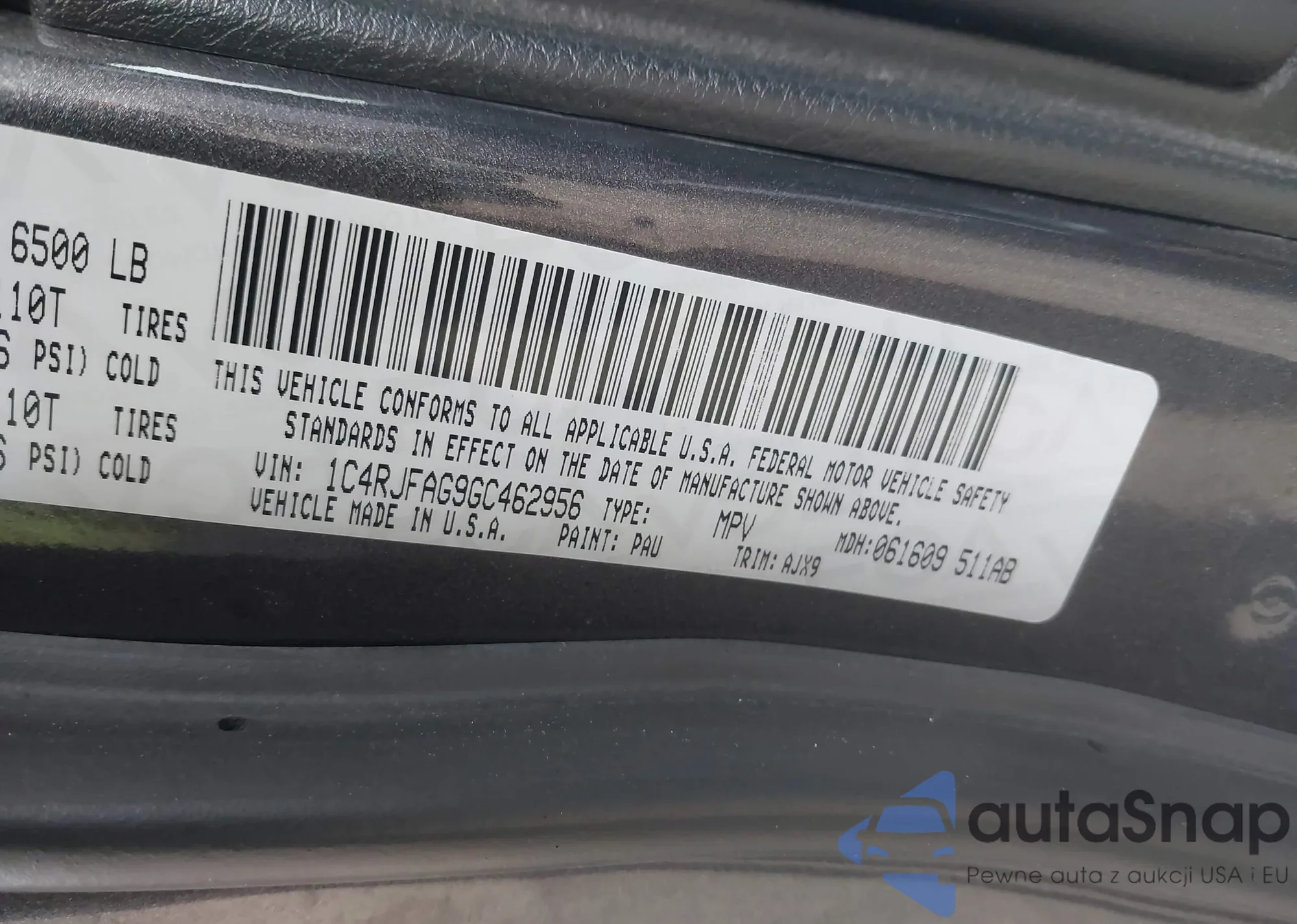 • VIN 1C4RJFAG9GC462956