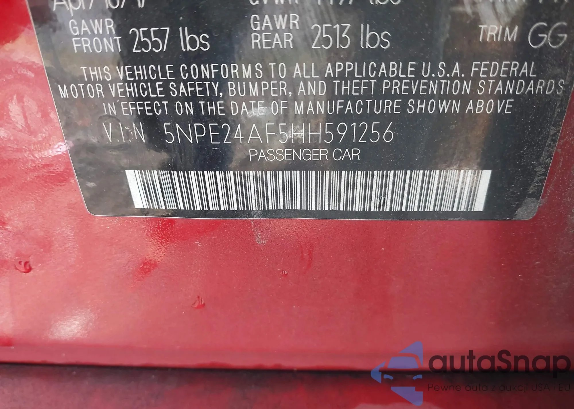 LOT: 43509986 VIN: 5NPD84LF2HH135660