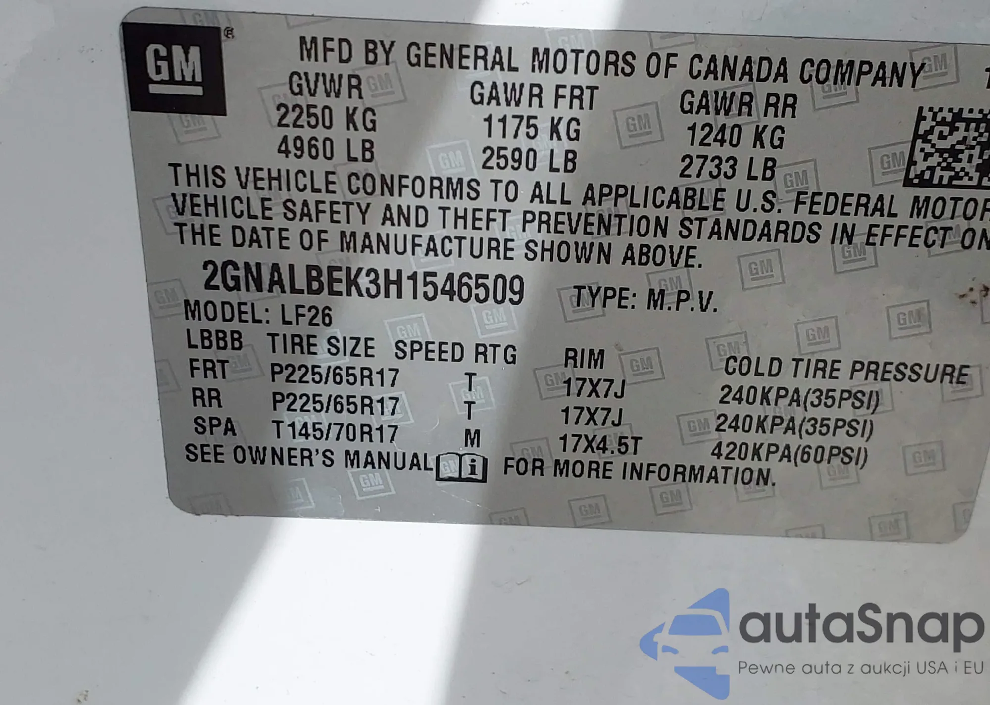 • VIN 2GNALBEK3H1546509