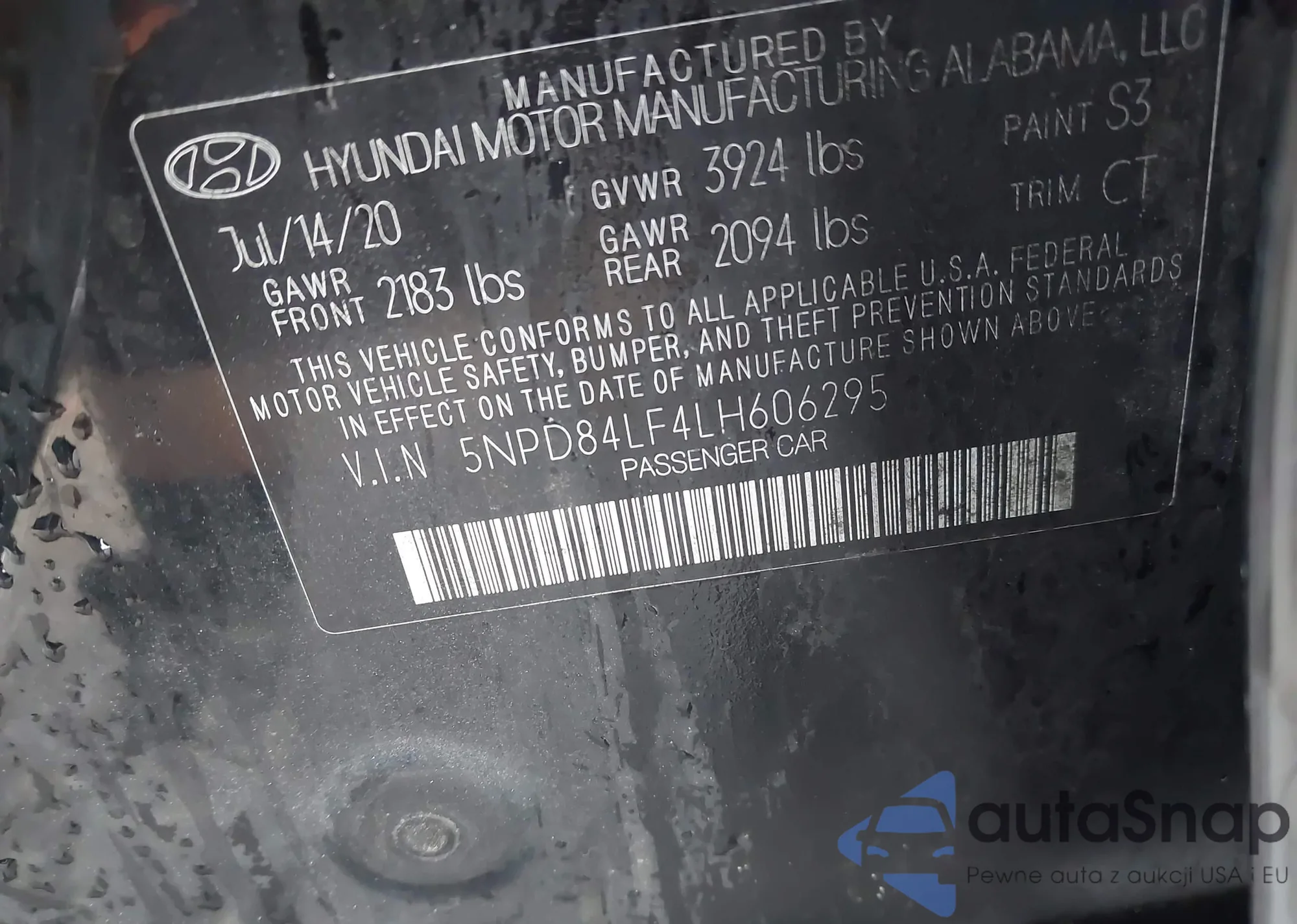 LOT: 41422573 VIN: 5NPD84LF4LH606295