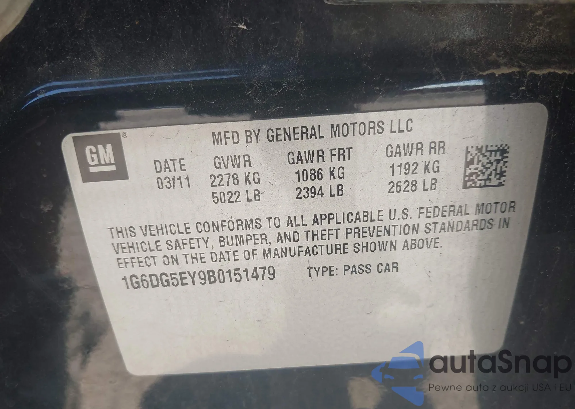 • VIN 1G6DG5EY9B0151479