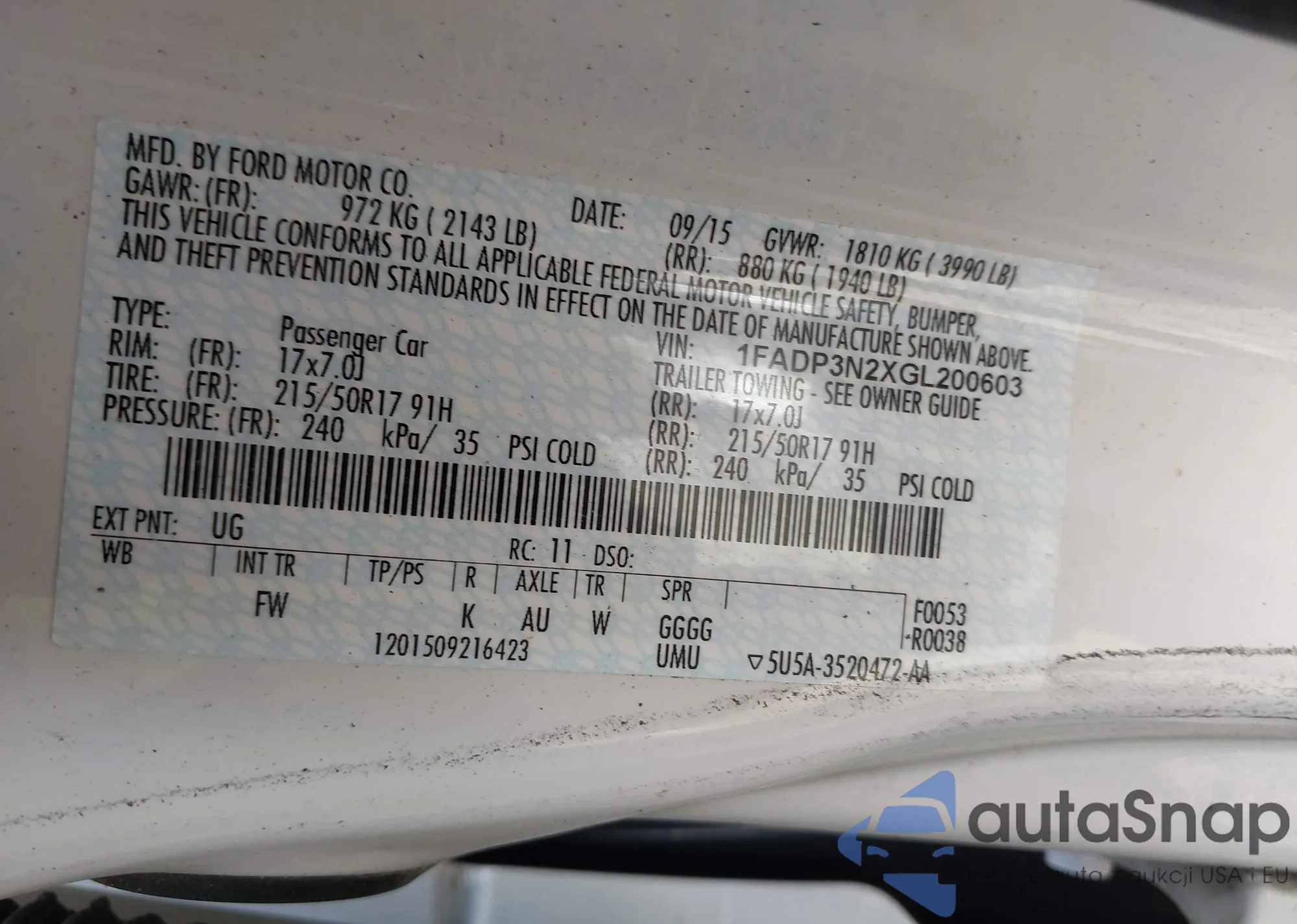 • VIN 1FADP3N2XGL200603