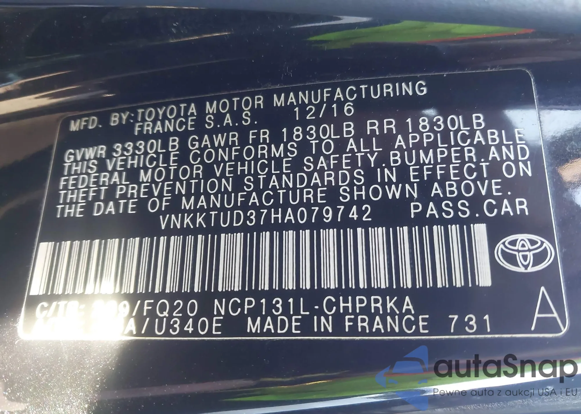LOT: 43701380 VIN: VNKKTUD37HA079742