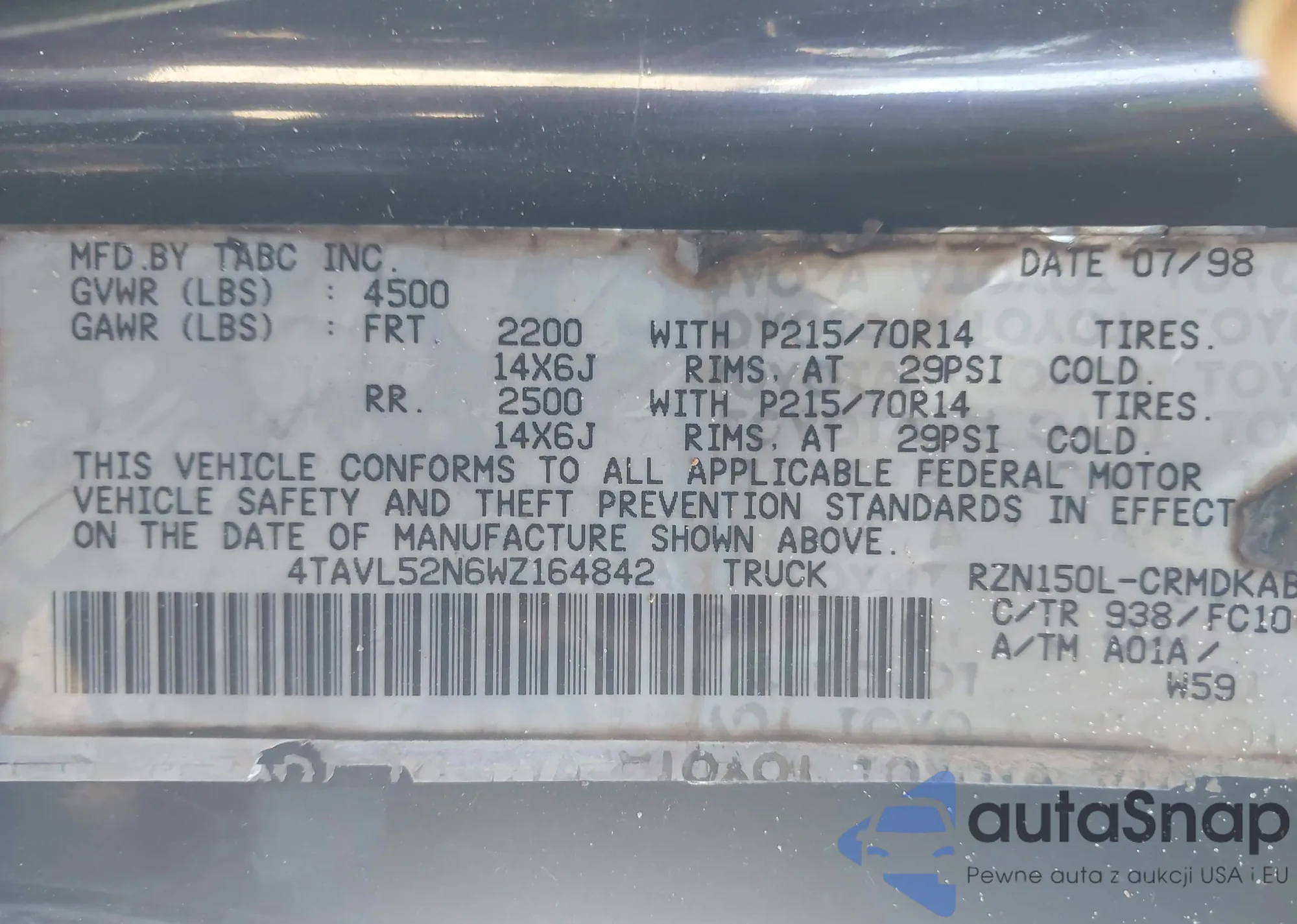 • VIN 4TAVL52N6WZ164842