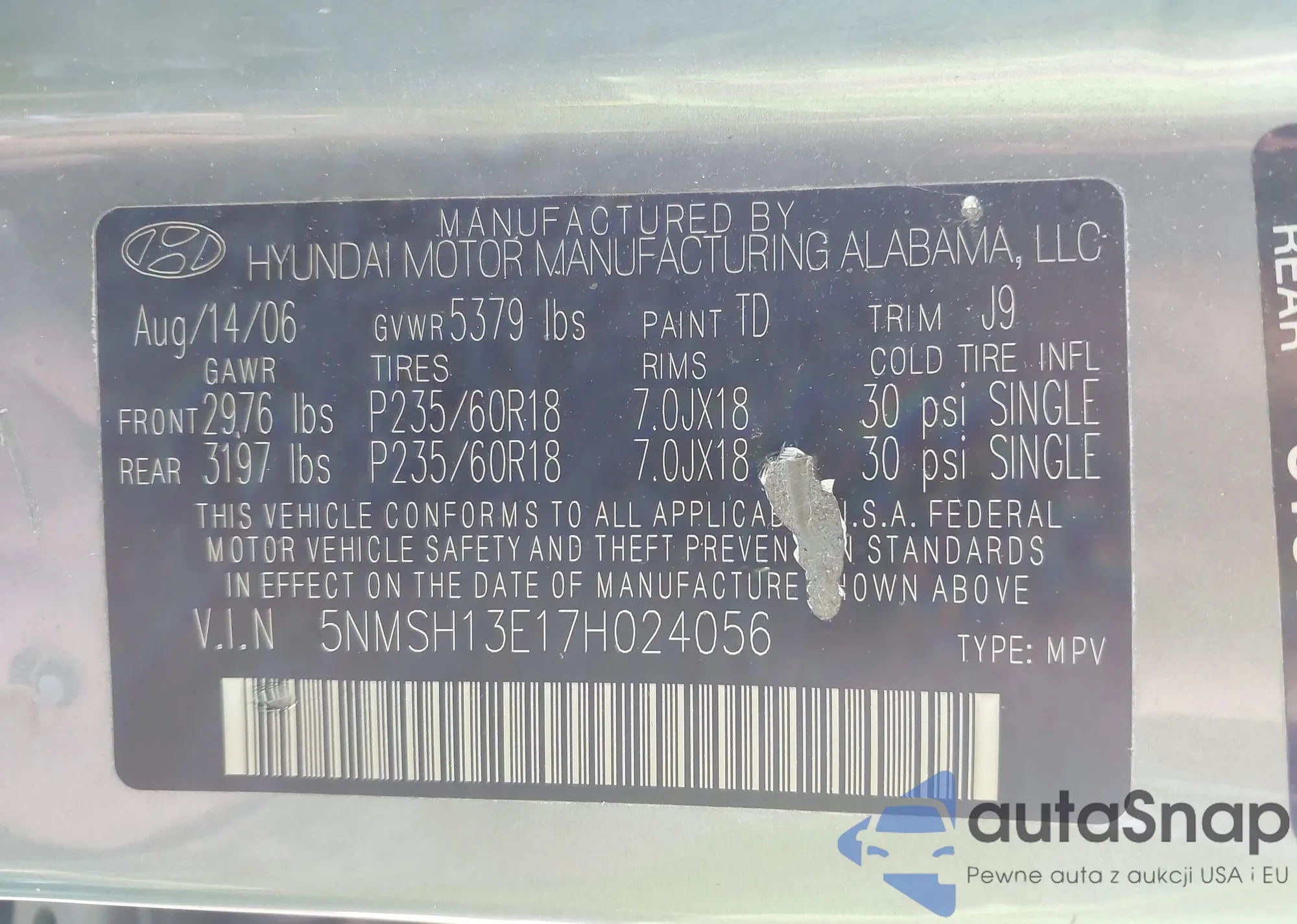 • VIN 5NMSH13E17H024056