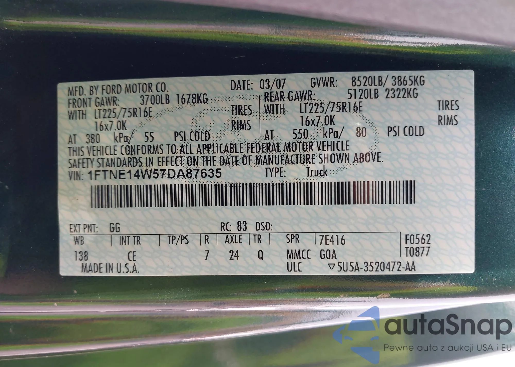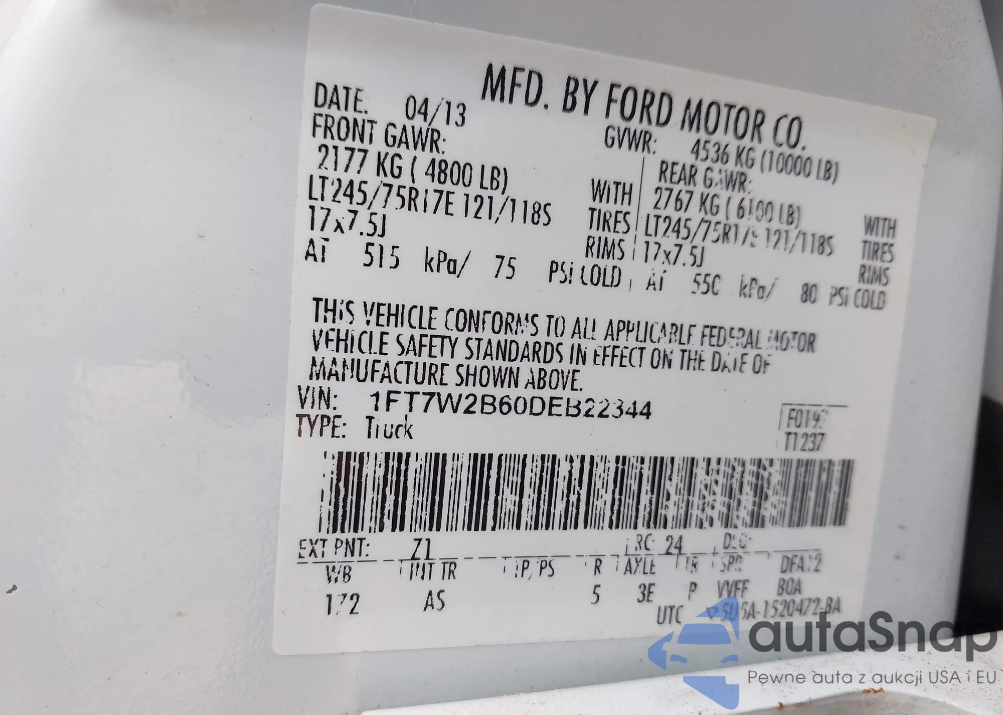 • VIN 1FT7W2B60DEB22344