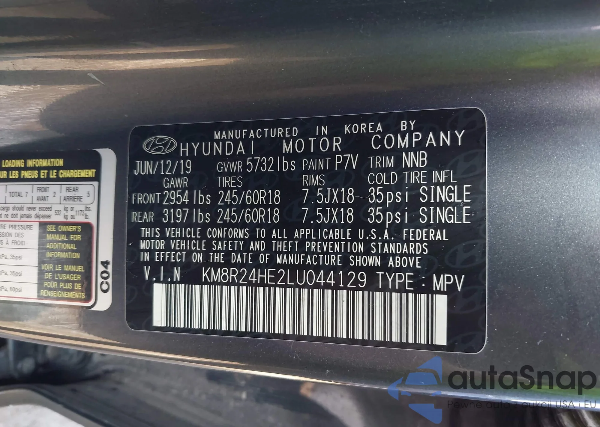 LOT: 43249598 VIN: KM8R24HE2LU044129