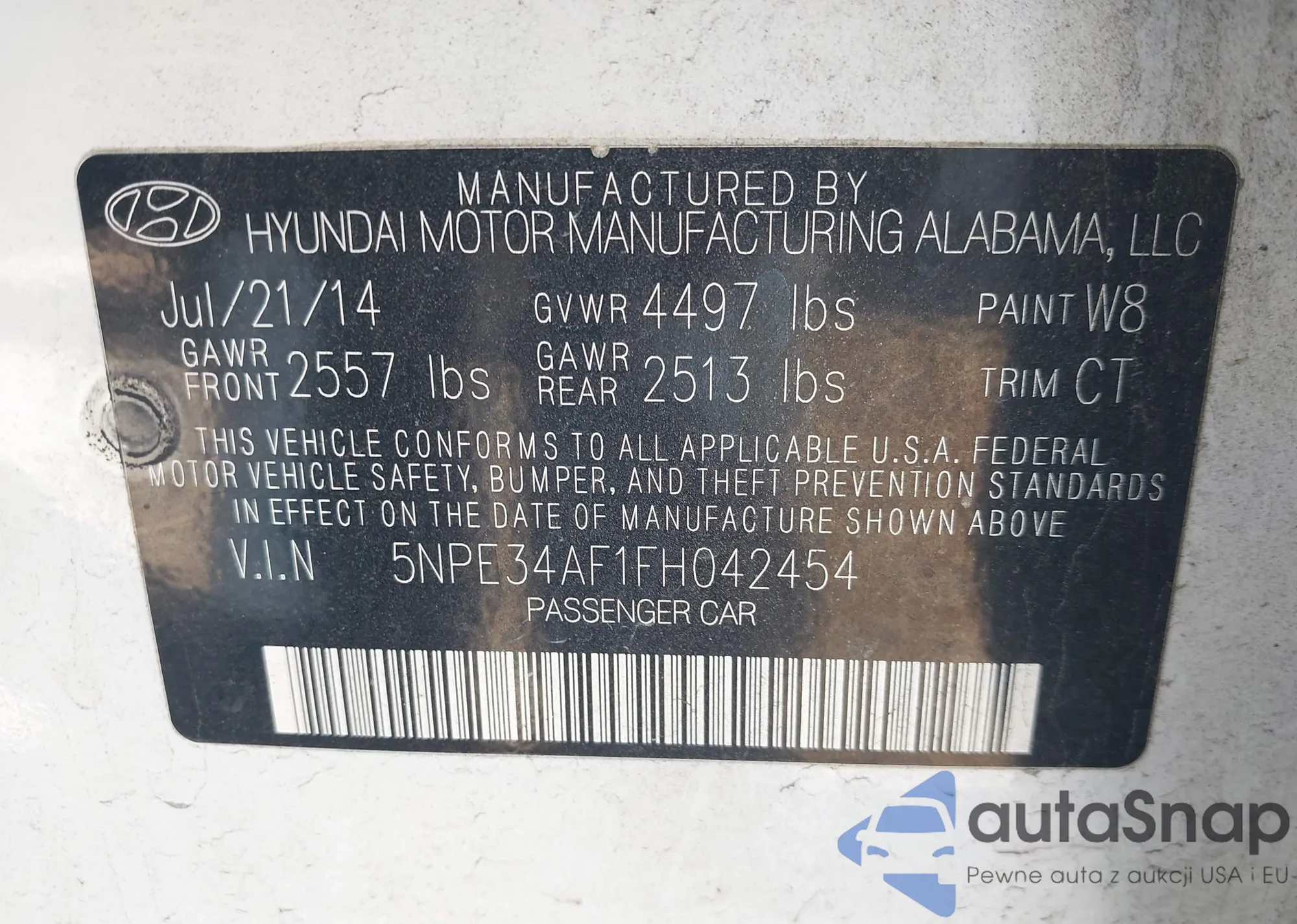 • VIN 5NPE34AF1FH042454