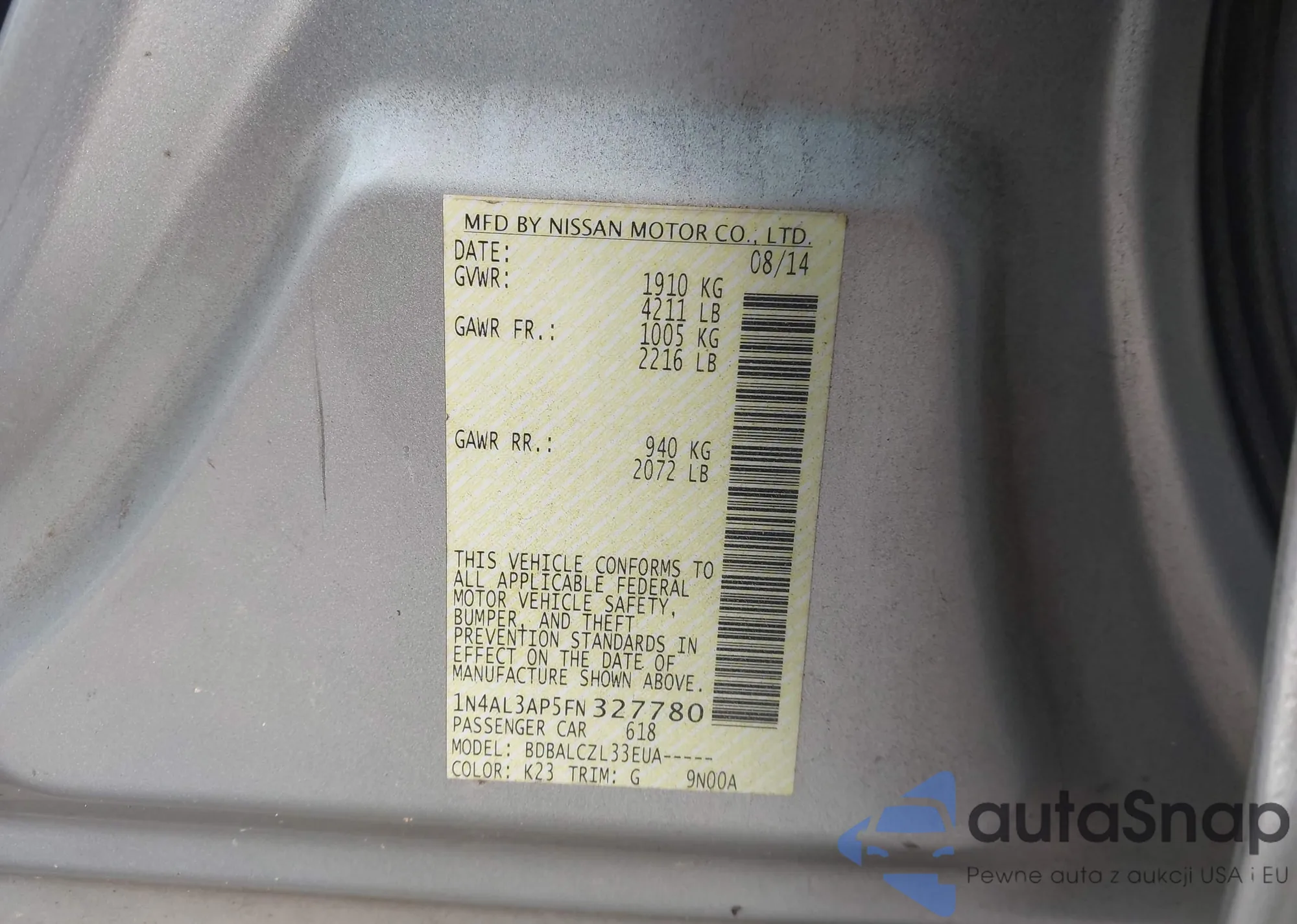 LOT: 43226975 VIN: 5N1AT2MV0HC812143