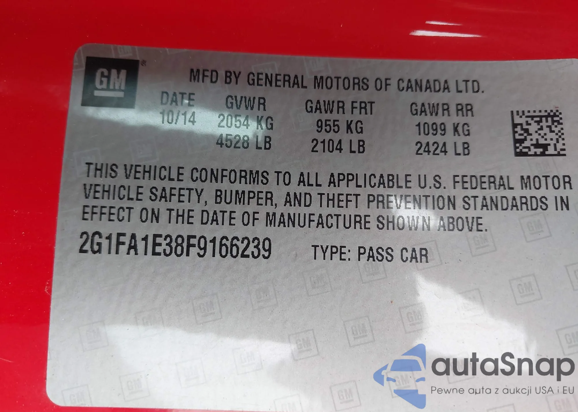 LOT: 43282109 VIN: 1G1PC5SB2F7295404
