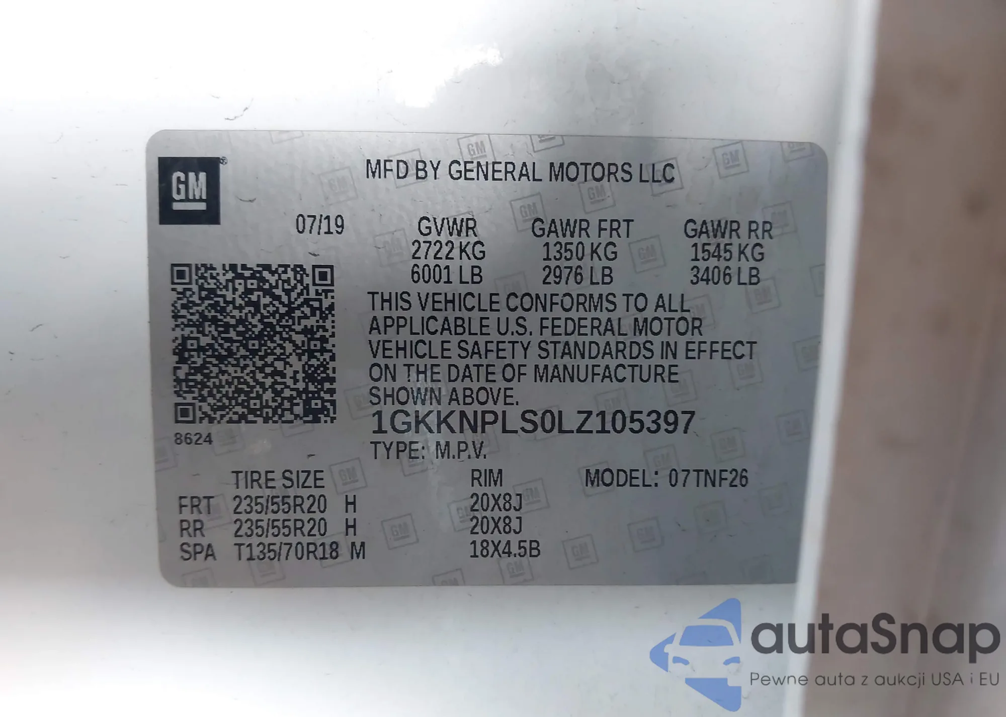 LOT: 43197394 VIN: 1GKKNPLS0LZ105397