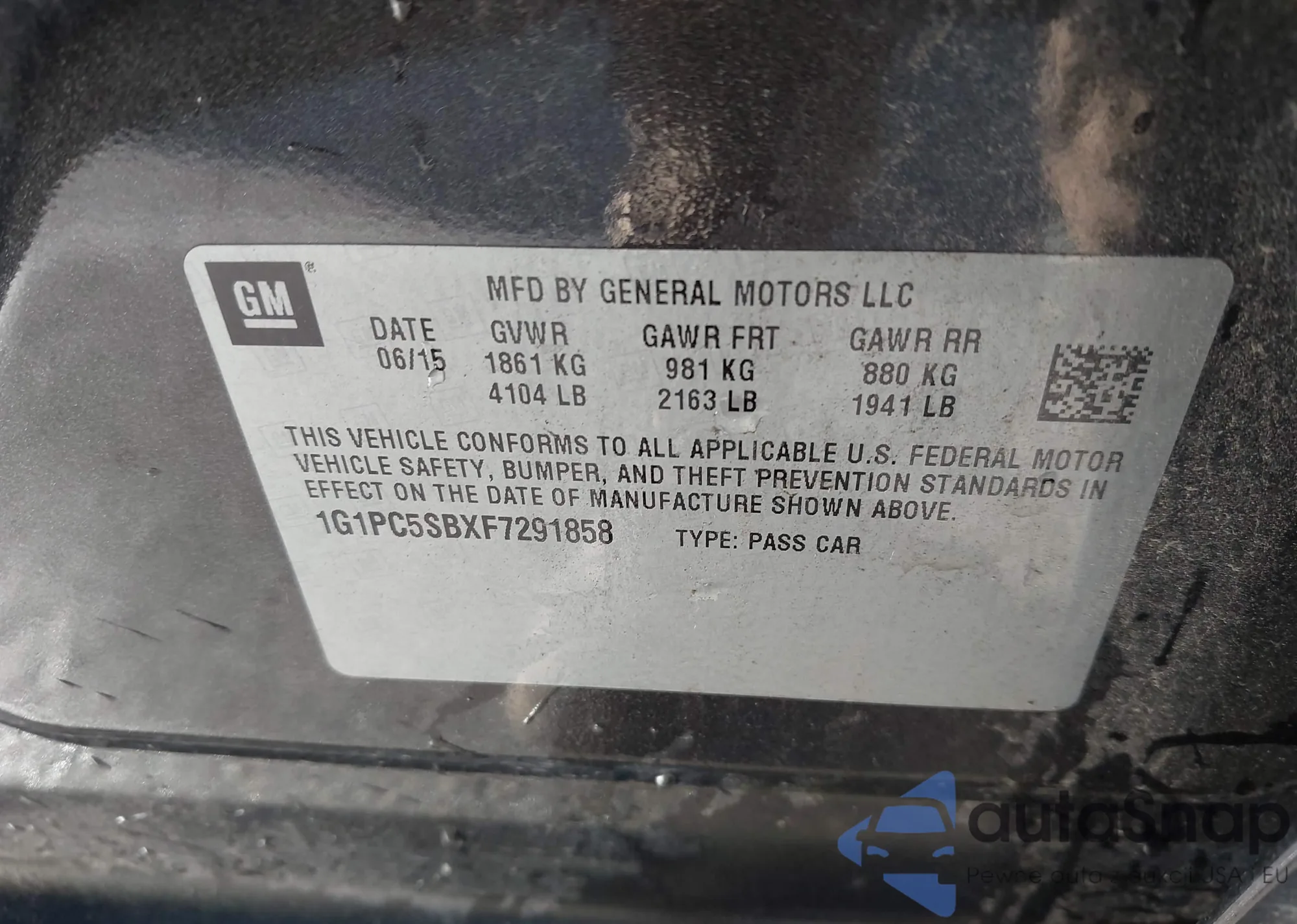 LOT: 43526643 VIN: 1G1PC5SBXF7291858